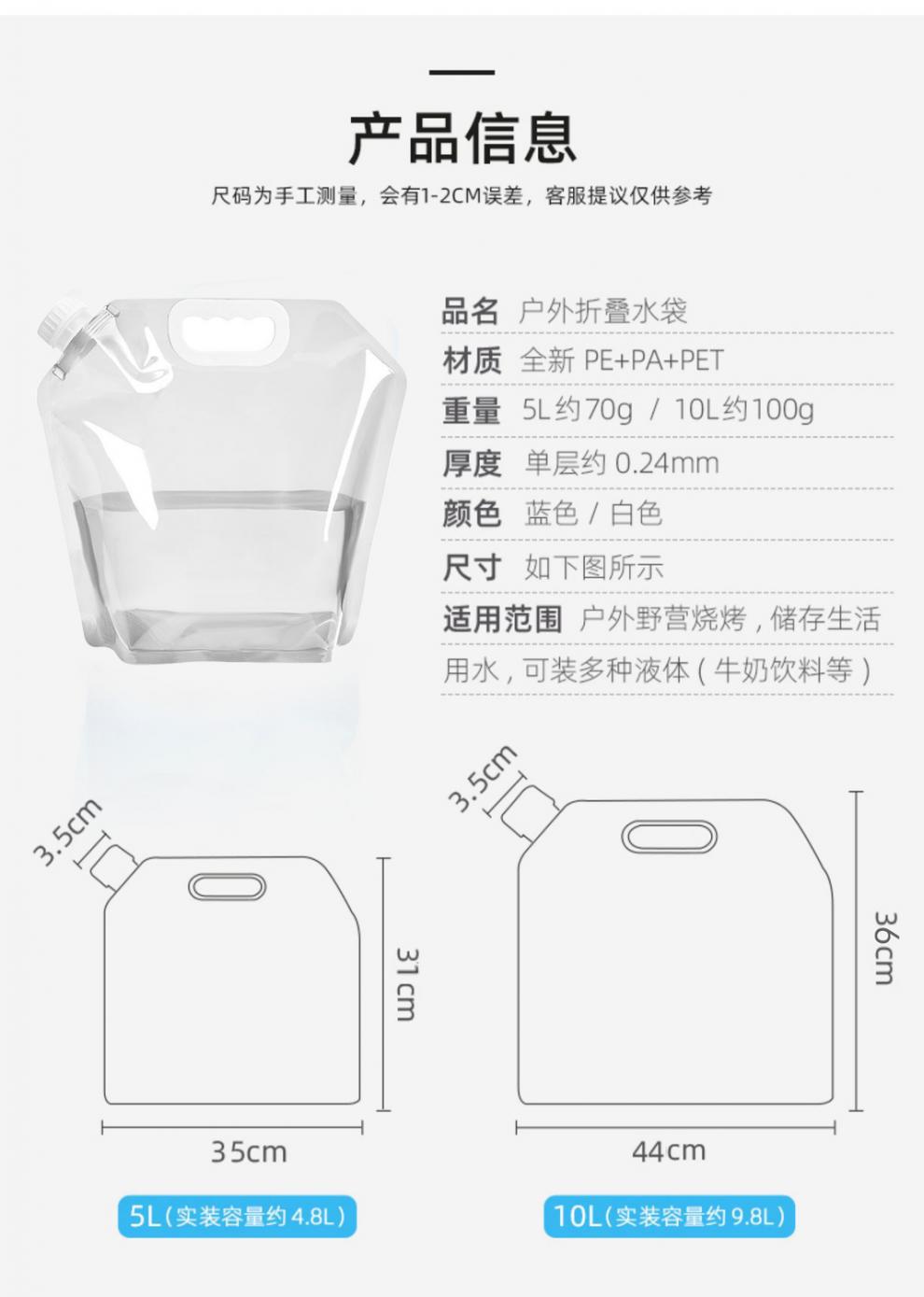 Bolsa de agua para exteriores Bolsa de almacenamiento de agua plegable portátil de gran capacidad para acampar, picnic, viaje, bolsa de agua de plástico gruesa, bolsa de agua para coche