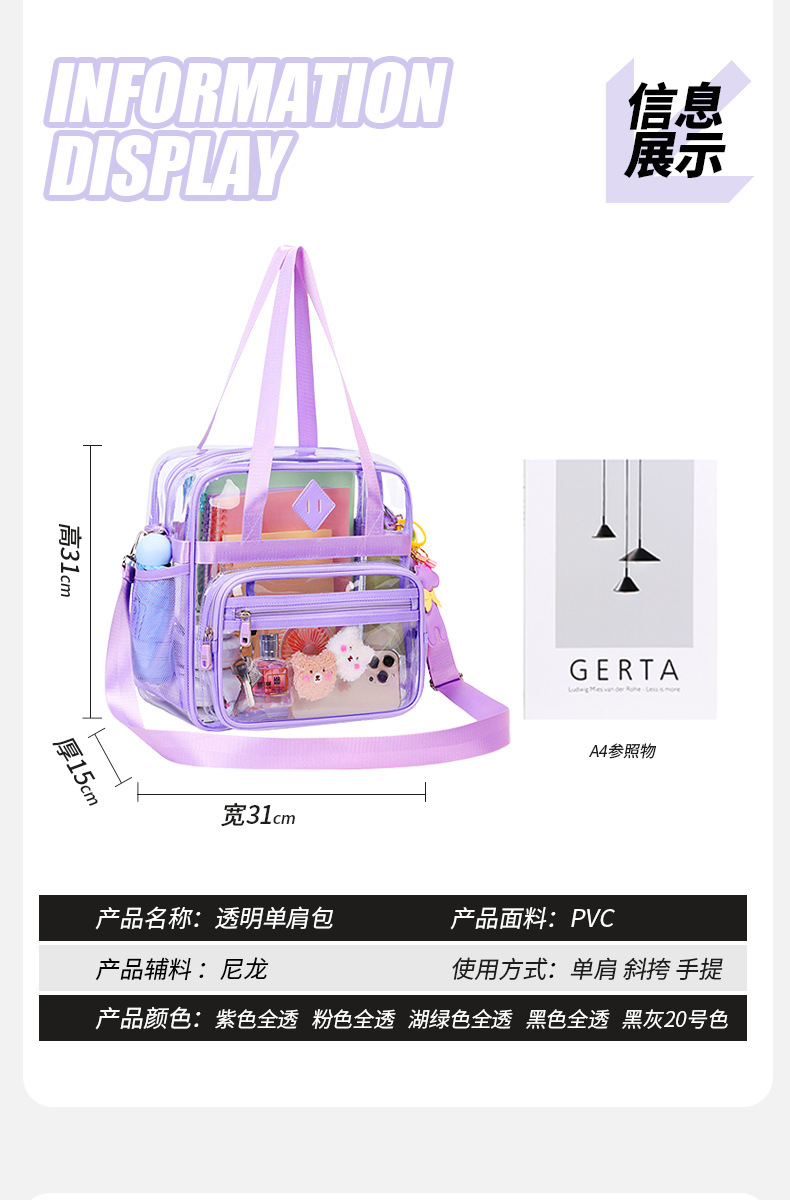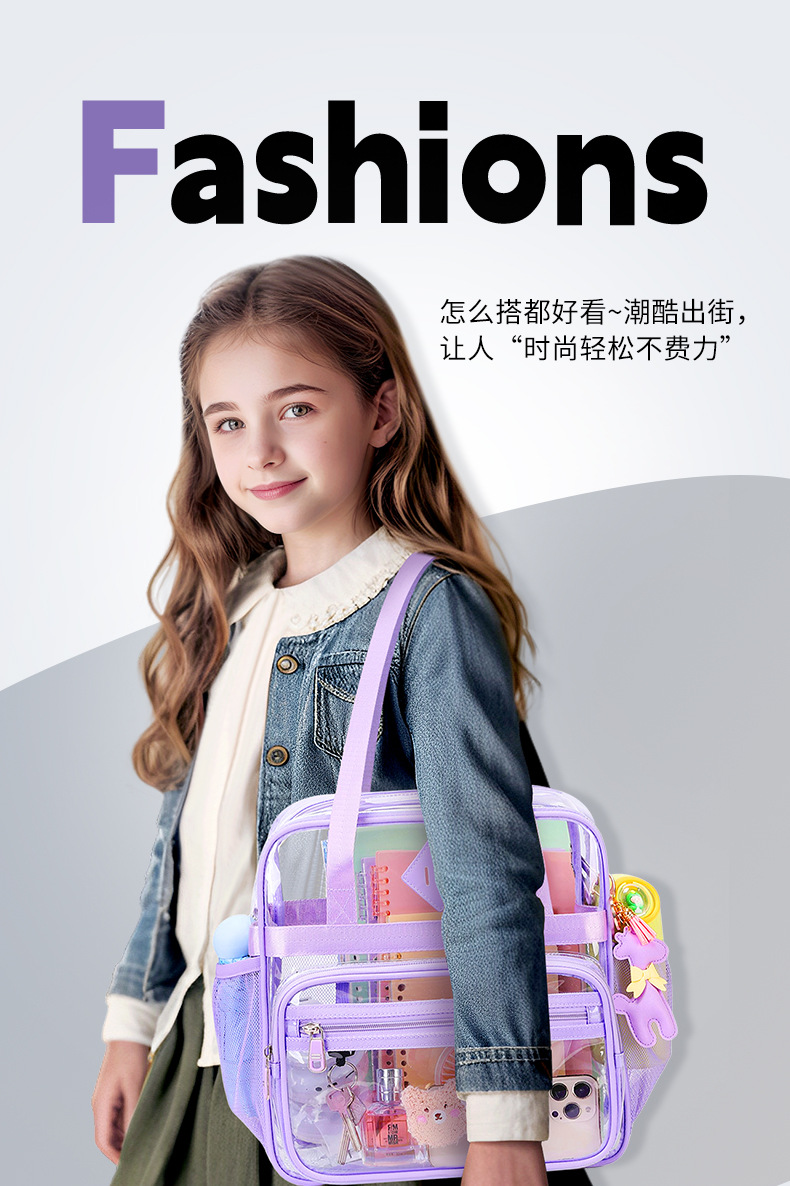Amazon fuente transfronteriza bolsa transparente hombro diagonal portátil impermeable escuela primaria escuela secundaria escuela secundaria mochila escolar de gran capacidad