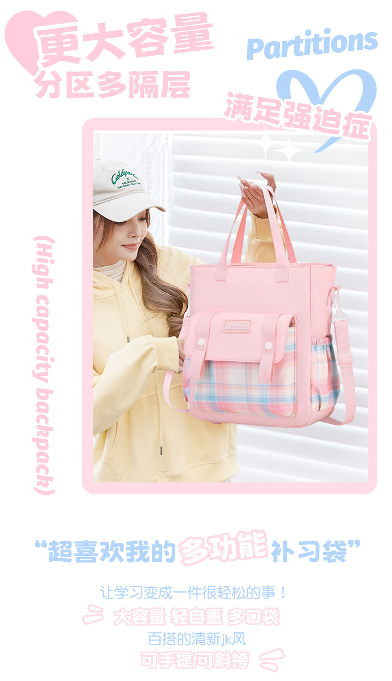 Versión coreana del bolso Tote para mujer, estilo a cuadros, pequeño y fresco, estudiante del campus, bandolera de un solo hombro, mochila de compras para mujer
