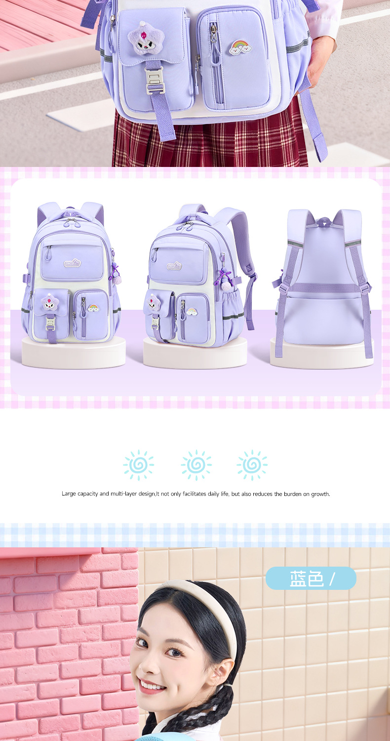 Hermosas bolsas escolares de niñas Kulomi, estudiantes de primaria, grado 1,234,56 mochila impermeable de gran capacidad