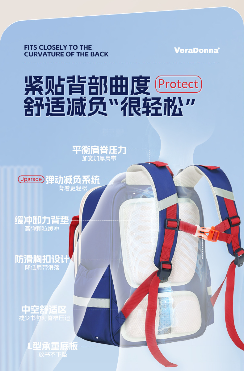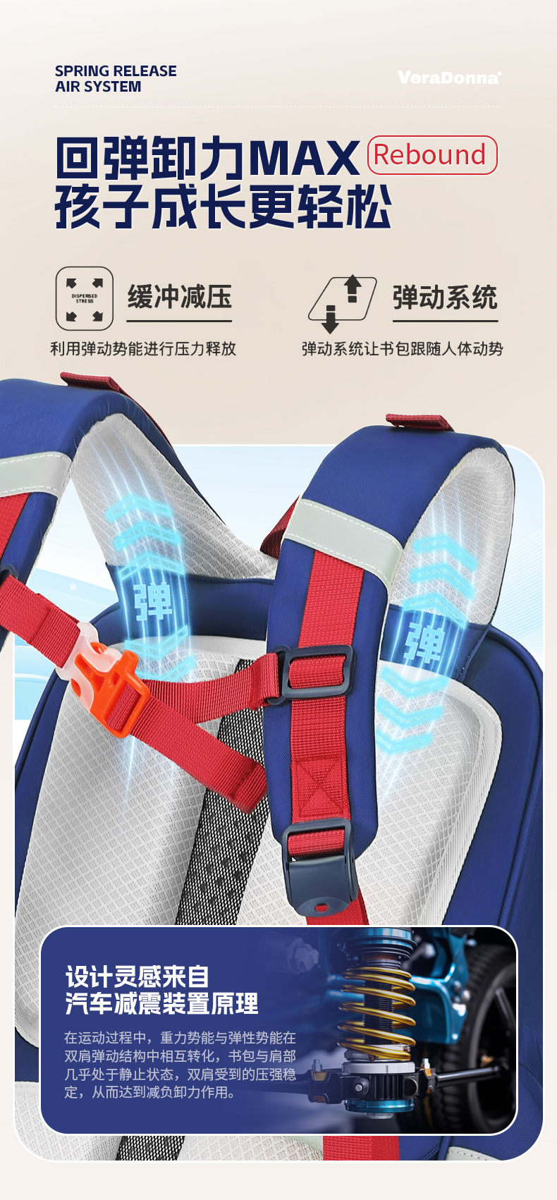 Mochila de reducción de carga suspendida Mochila de estudiante de primaria súper linda Universal 3-6 grados Resistente a la suciedad y a la caída de niños y niñas