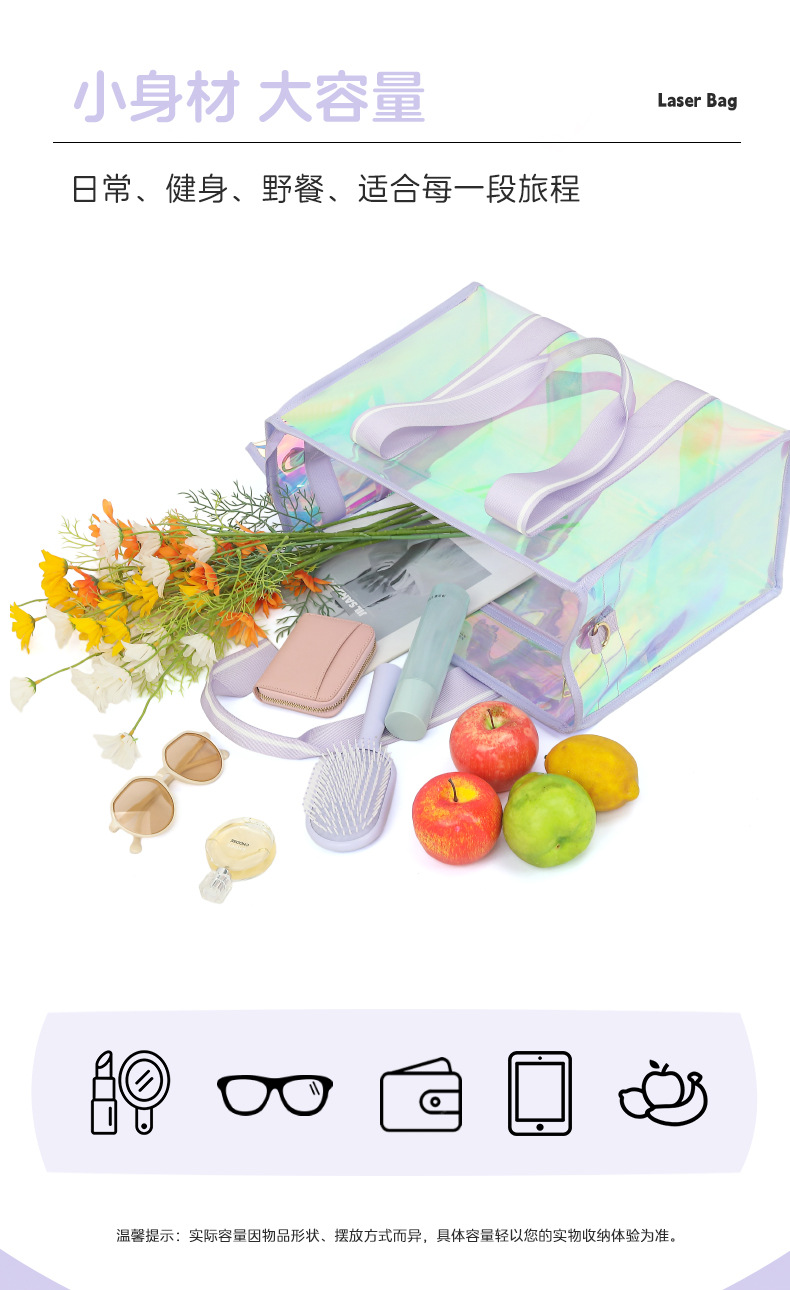Bolso de mujer de PVC mágico de venta caliente transfronterizo bolso de playa con láser bolso de mensajero de gran capacidad bolso Tote fruta impermeable