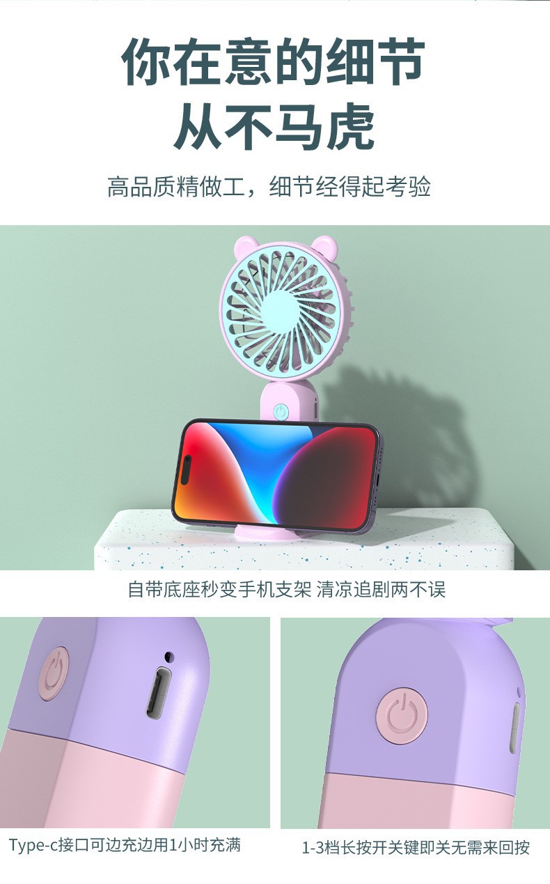 新款卡通手持迷你小风扇usb桌面学生户外大风力便携式底座风扇