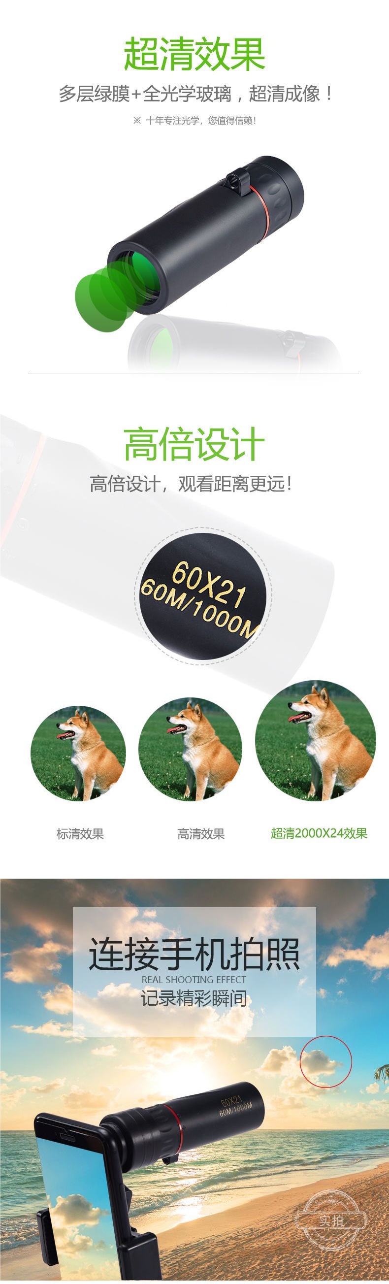| Especificaciones | 60x22 versión de alta definición + clip de teléfono móvil + brújula - "lista de compra obligatoria, versión actualizada 60x25 versión de alta definición + clip de teléfono móvil + brújula" - Lista de compra obligatoria, versión estándar 40x22 + clip de teléfono móvil + brújula) - Lista de compra obligatoria |