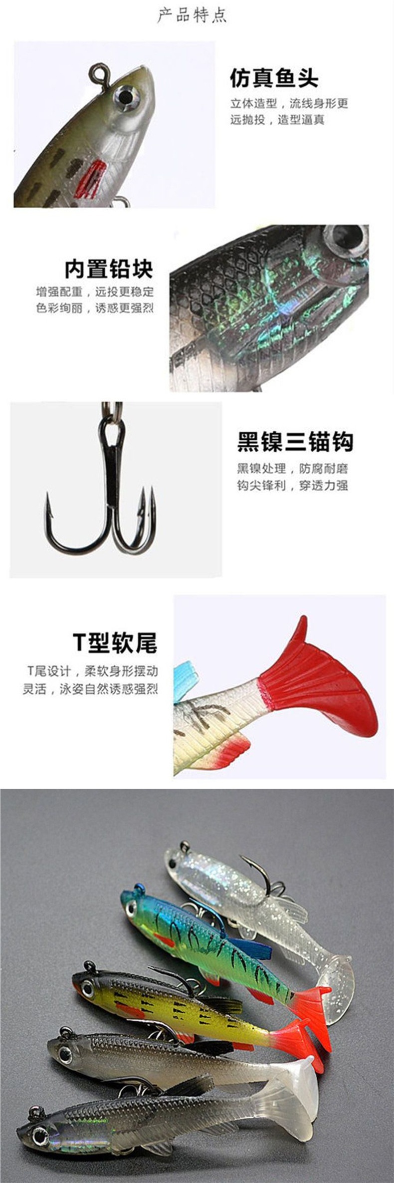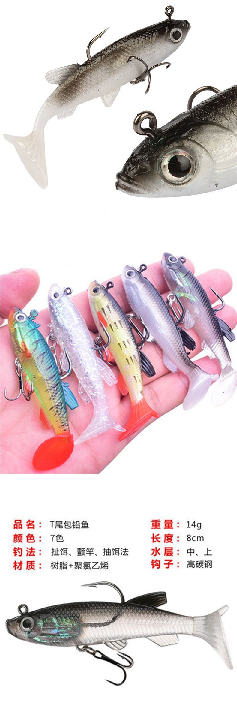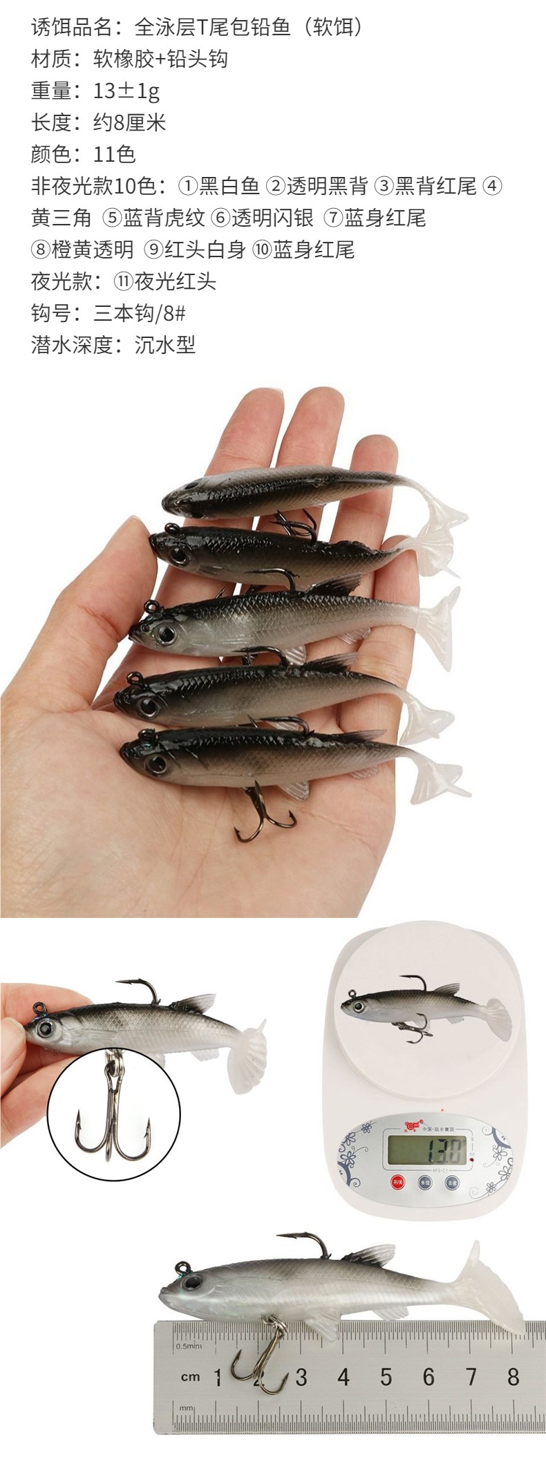 | Especificaciones | Gancho de 8 cm / 13 g / 8 [cebo suave envuelto en plomo] |