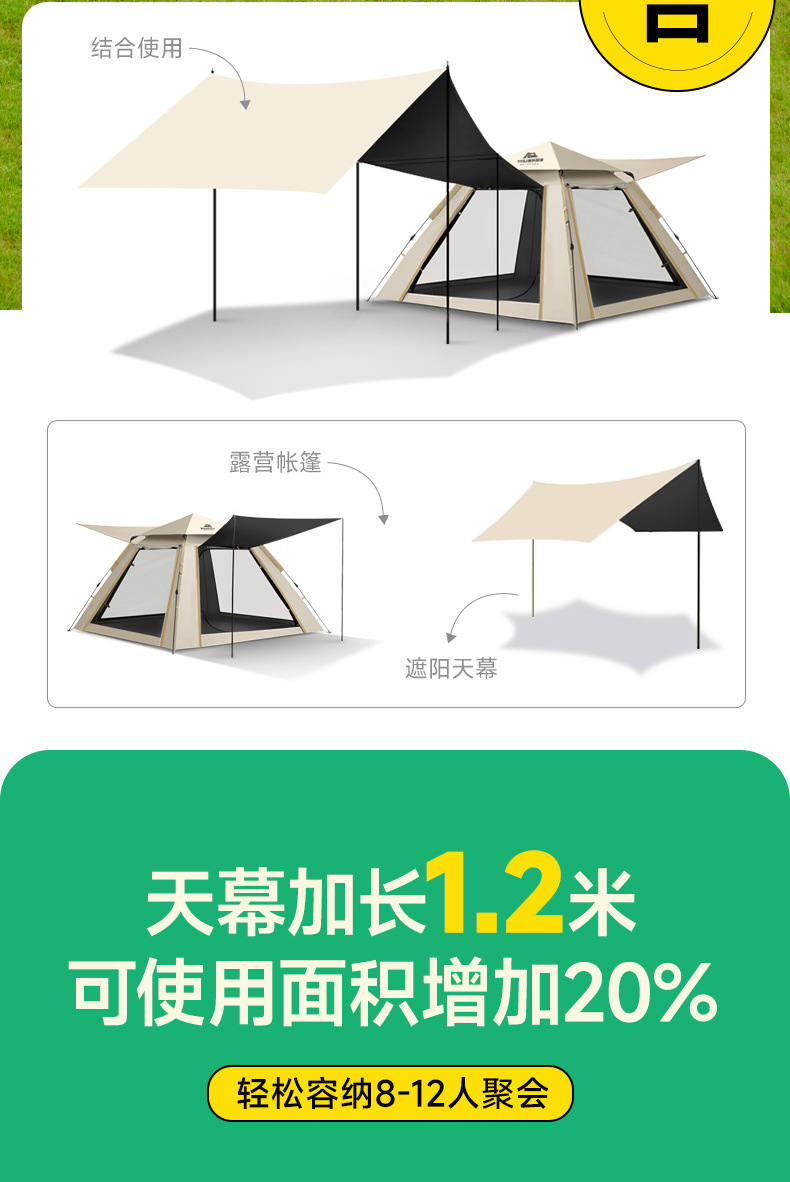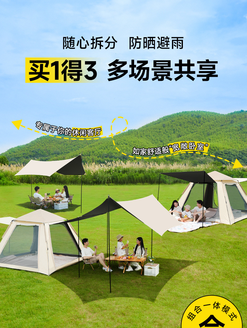 Yuyang Villa Carpa al aire libre plegable conveniente techo integrado camping automático durante la noche protector solar lluvia espeso camping
