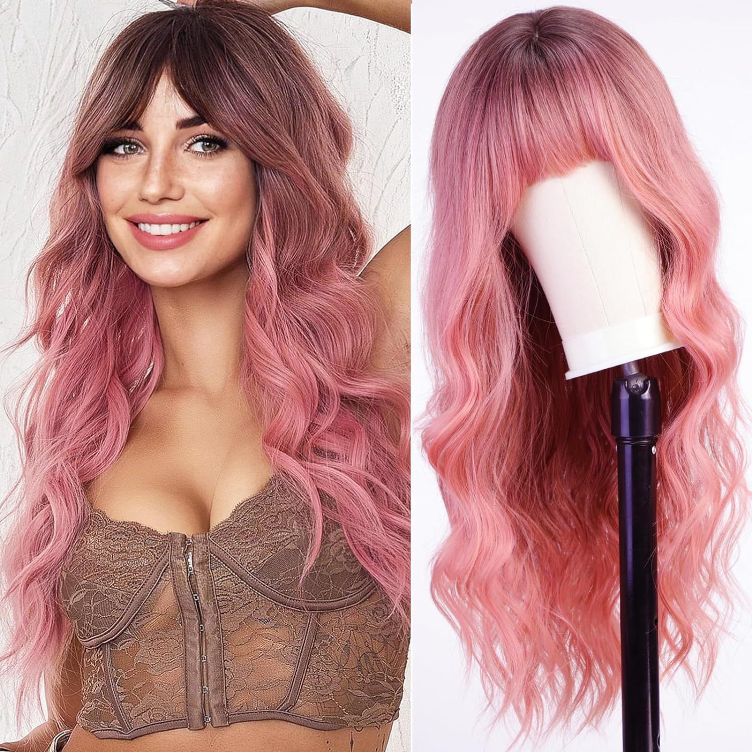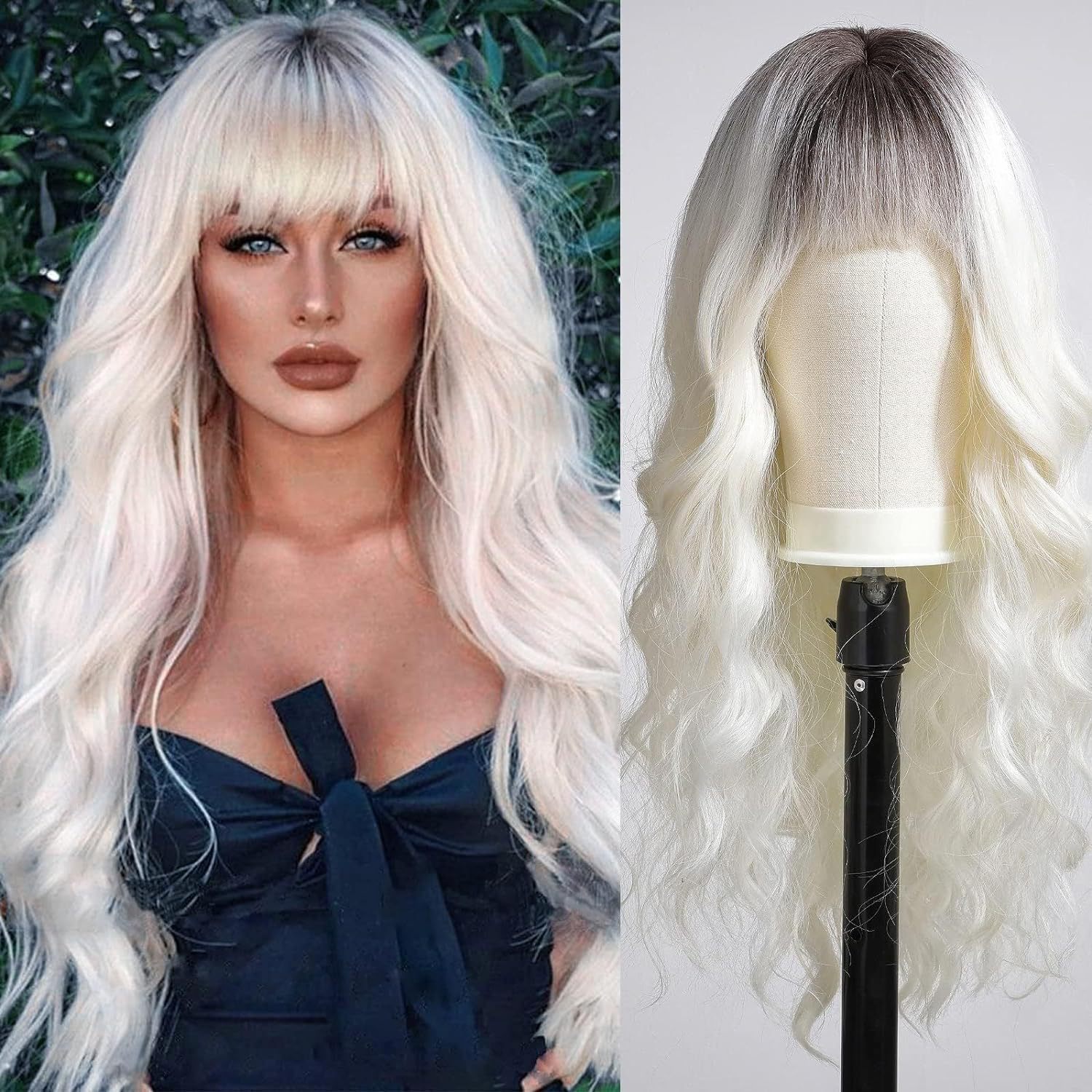 【款式】:齐刘海大波浪长卷发