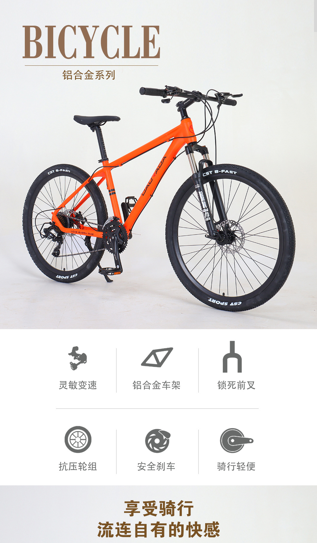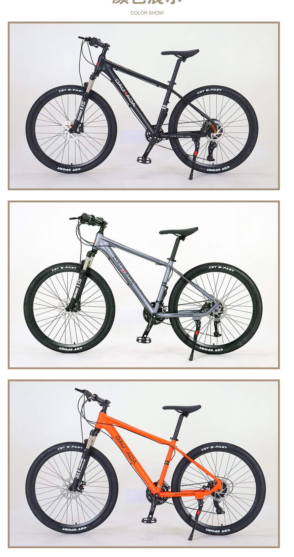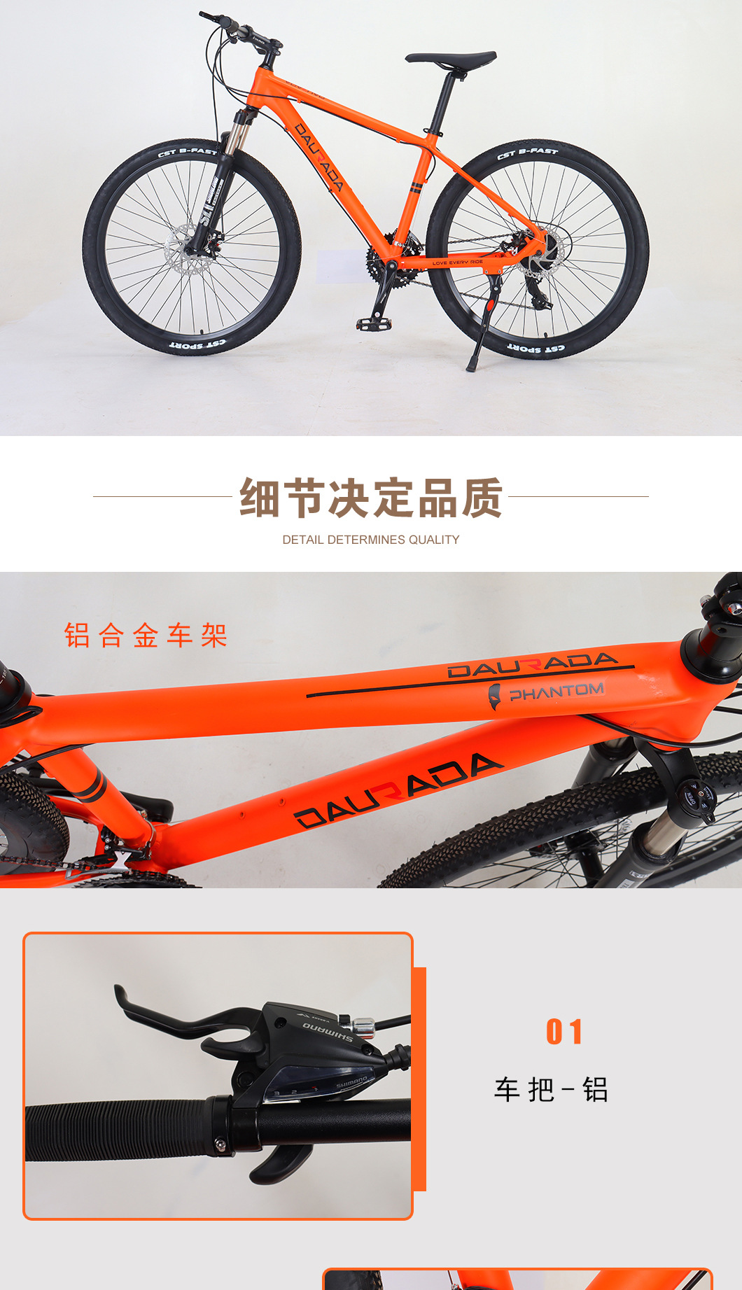 本厂拥有多拉达/DAURADA自主品牌,集研发、生产、销售于一体,生产销售山地车、雪地车、公路车、折叠车、通勤车等高性价比的各种车辆,产品获得了欧洲CE质量认证,线上线下市场销售,以骑行顺畅、零件使用时间久,外形美观等优点远销欧洲、中东、东南亚、南美洲、西亚、非洲、北美洲等地,获得了美好的口碑。