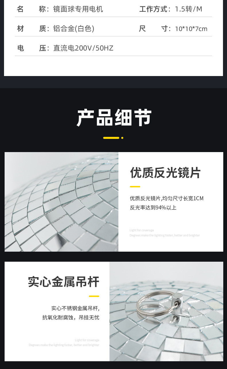 | Potencia de la fuente de luz | Diámetro 15 cm [plata] sin motor,Diámetro 20 cm [plata] sin motor,Diámetro 25 cm [plata] sin motor,Diámetro 30 cm [plata] sin motor,Diámetro 35 cm [plata] con motor,Diámetro 40 cm [plateado] con motor,Diámetro 50 cm [plata] con motor (carga logística),Diámetro 60 cm [plata] con motor (carga logística),Diámetro 70 cm [plata] con motor (carga logística),Diámetro 80 cm [plata] con motor (carga logística),Diámetro 100 cm [plata] con motor (carga logística),Diámetro 120 cm [plata] con motor (carga logística),Diámetro 150 cm [plata] con motor (carga logística),Diámetro 200 cm [plata] con motor (carga logística),Diámetro 250 cm [plata] con motor (carga logística),Focos especiales para bolas de cristal: focos monocromáticos [Atmósfera/barra de limpieza/barra de agitación lenta/habitación privada],Foser especial de bola de cristal-Foser de color [discoteca/Bengdi/Hogar],Motor especial para bola de vidrio [se requiere compra adicional por debajo de 35 cm] |