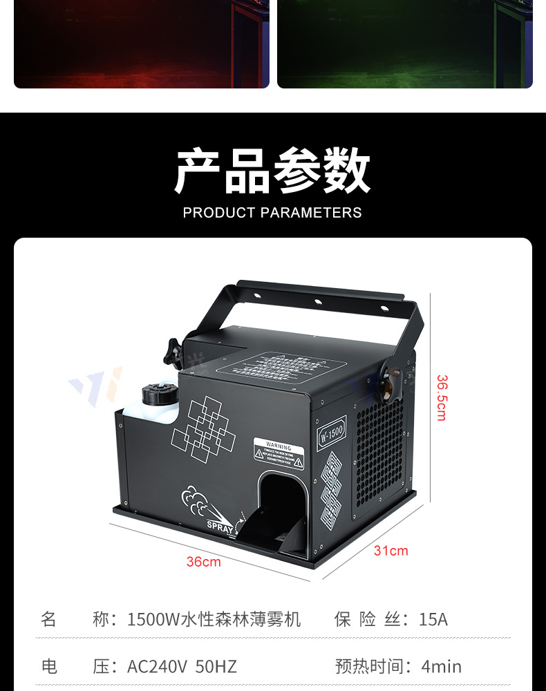 | Especificaciones | Máquina de niebla matutina de 1500w |