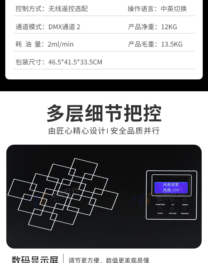 | Potencia de la fuente de luz | Máquina de niebla de 1200w, máquina de niebla de 1500w, máquina de niebla de 2000w |
