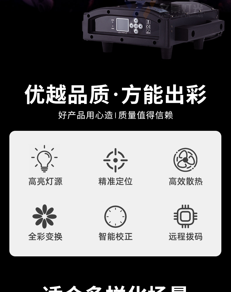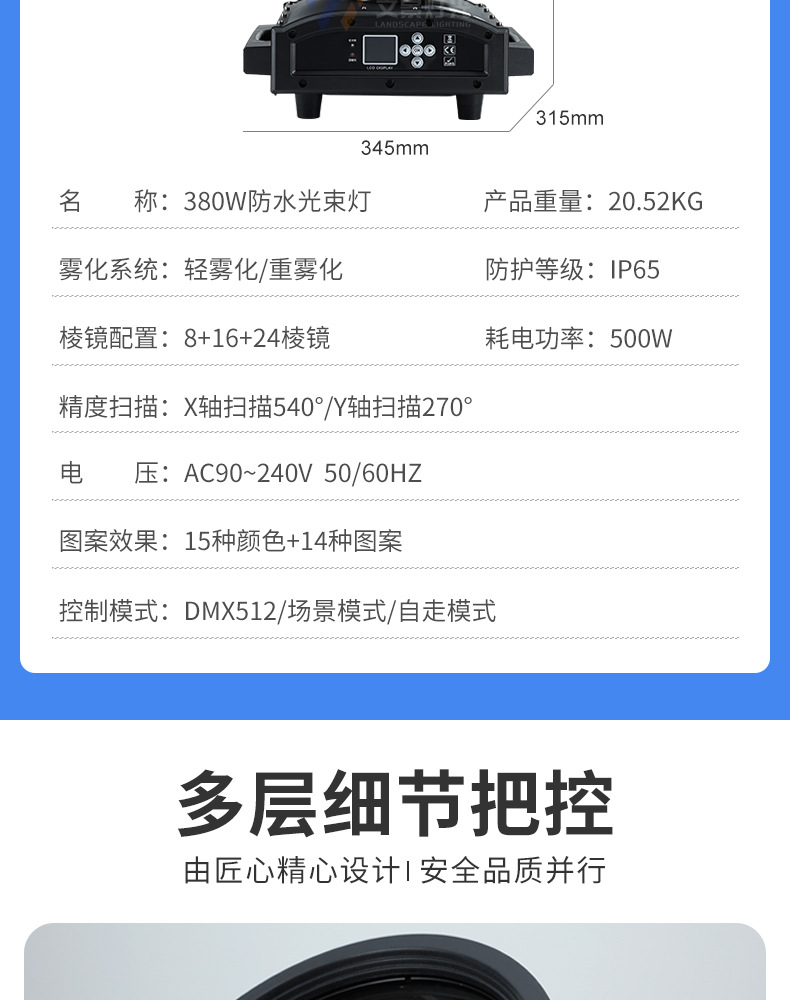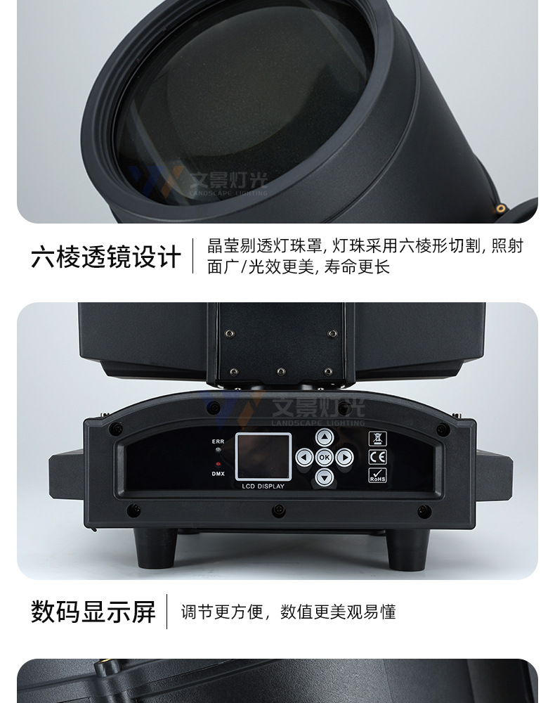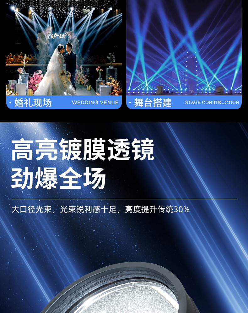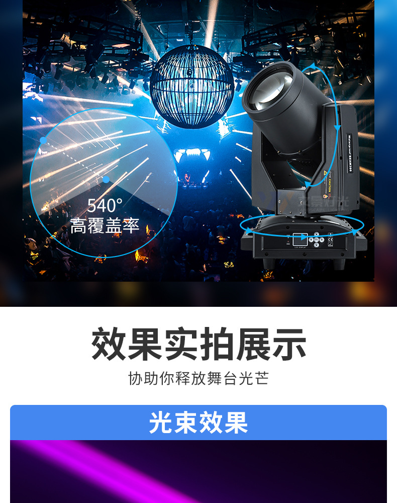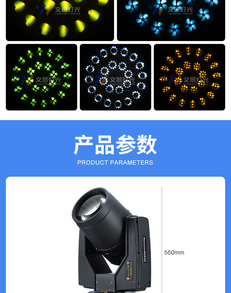 | Potencia de la fuente de luz | Lámpara de haz impermeable de 230w, lámpara de haz impermeable de 260w, lámpara de haz impermeable de 350w, lámpara de haz impermeable de 380w, lámpara de haz impermeable de 350w [bombilla osran], lámpara de haz impermeable de 380w [bombilla osran], diseño escénico |