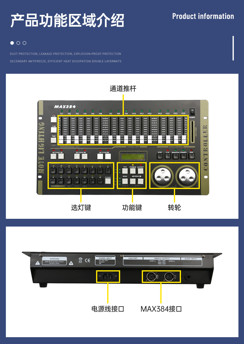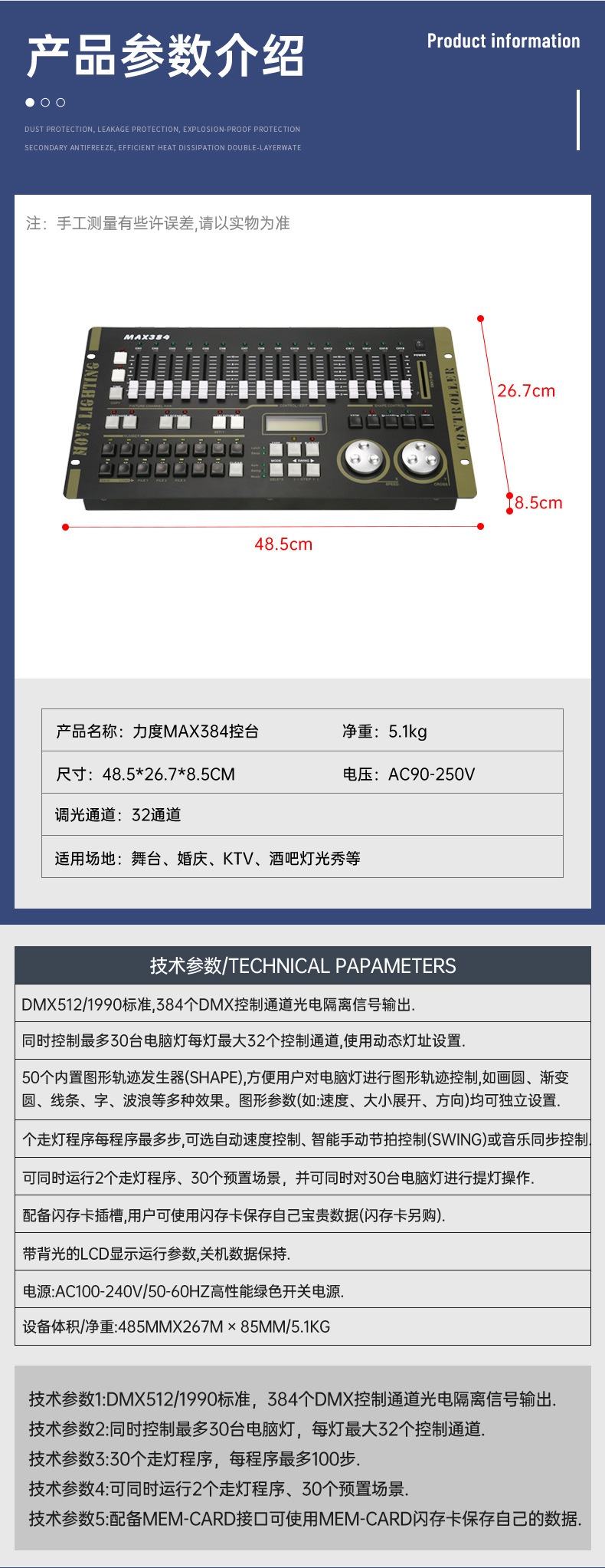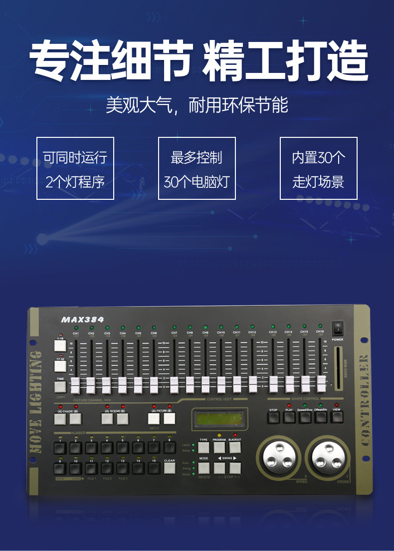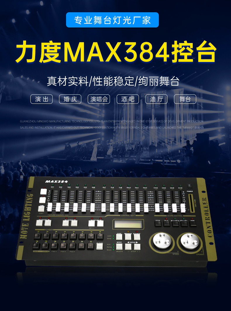 Consola de iluminación Muguang fuerza 384 consola de iluminación consola sacudiendo la cabeza lámpara de haz de luz par controlador de atenuación