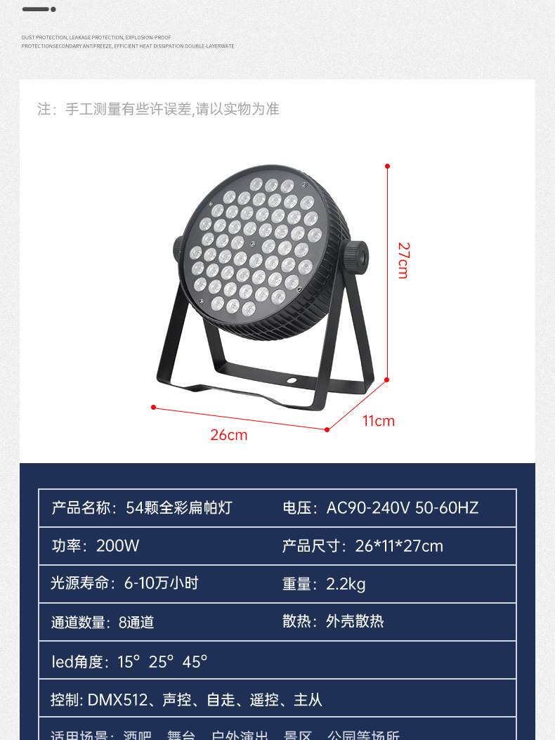 Nuevo 54 unidades 3W a todo color plana par luz teñido boda sala de baile LED superficie luz etapa equipo de luz de la lámpara conjunto completo