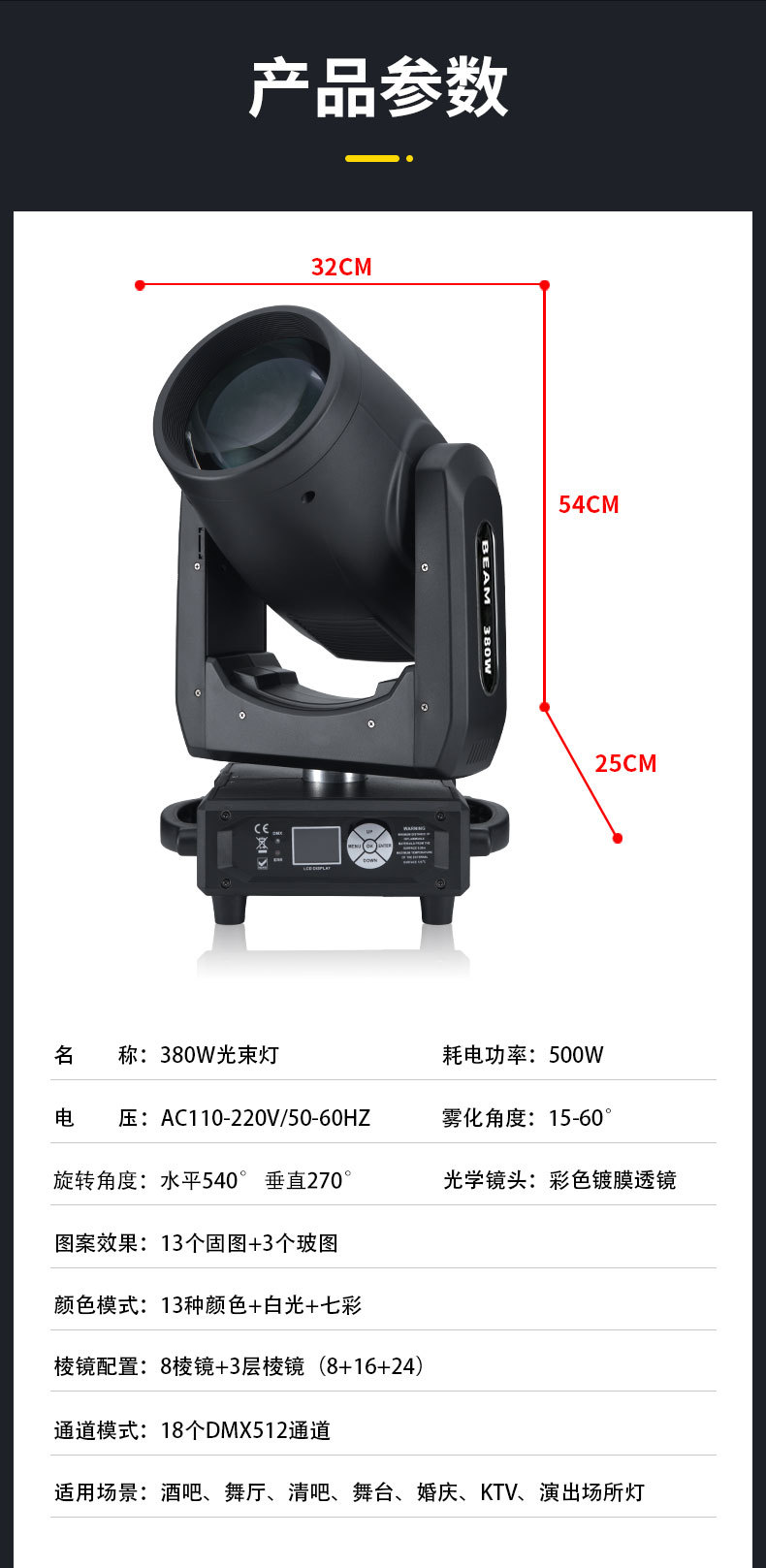 | Especificaciones | Mini 380w Beam Light |