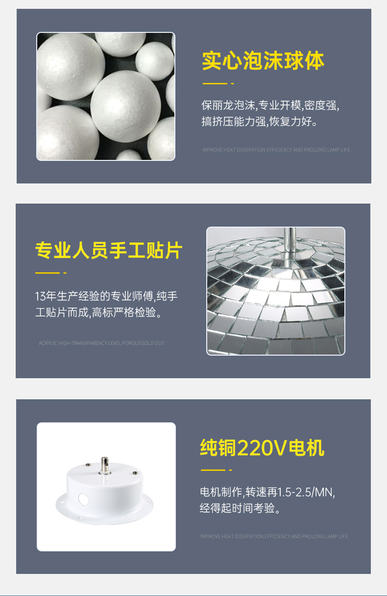 | Poder de la fuente de luz | Bola reflectante diámetro 15 cm [plateada] sin motor,Bola reflectante diámetro 20 cm [plateada] no incluye motor,Bola reflectante diámetro 25 cm [plateada] sin motor,Bola reflectante diámetro 30 cm [plateada] no incluye motor,Bola reflectante diámetro 35 cm [plateada] no incluye motor,Bola reflectante diámetro 40 cm [plateada] no incluye motor,Bola reflectante de 50 cm de diámetro [plateada] (incluido el motor),Bola reflectante de 60 cm de diámetro [plateada] (incluido el motor),Bola reflectante de 70 cm de diámetro [plateada] (incluido el motor),Bola reflectante de 80 cm de diámetro [plateada] (incluido el motor),Bola reflectante de 100 cm de diámetro [plateada] (incluido el motor),Bola reflectante de 120 cm de diámetro [plateada] (incluido el motor),Bola reflectante de 150 cm de diámetro [plateada] (incluido el motor),Motor de bola reflectora,Foco monocromo,Foco de color |