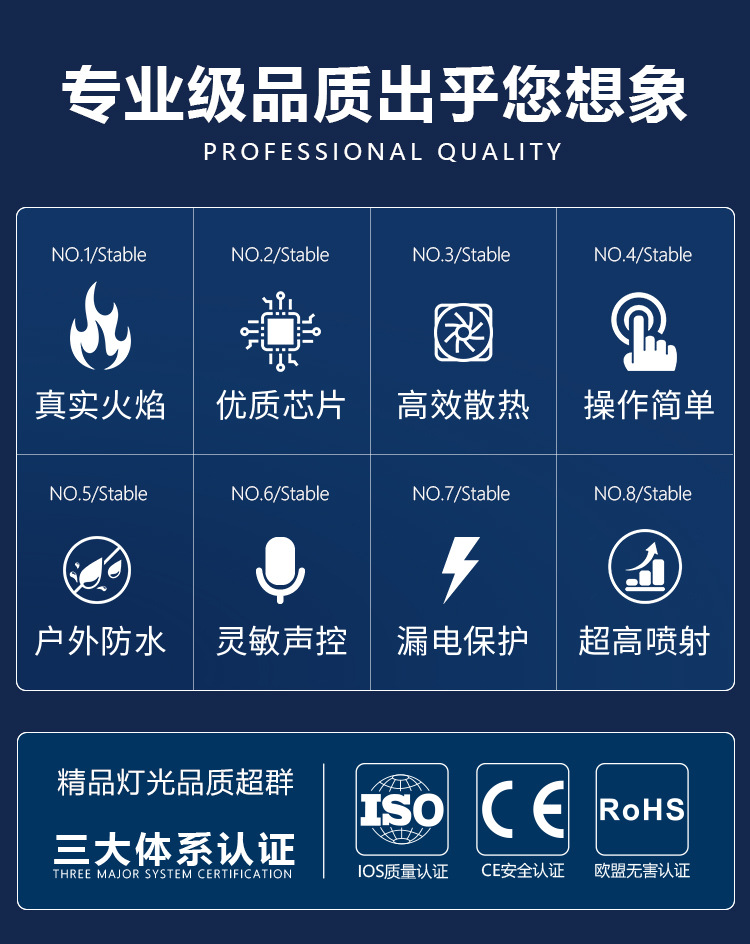 | Potencia de la fuente de luz | Lanzallamas impermeables a gran altitud, lanzallamas de sacudida de cabeza impermeables |