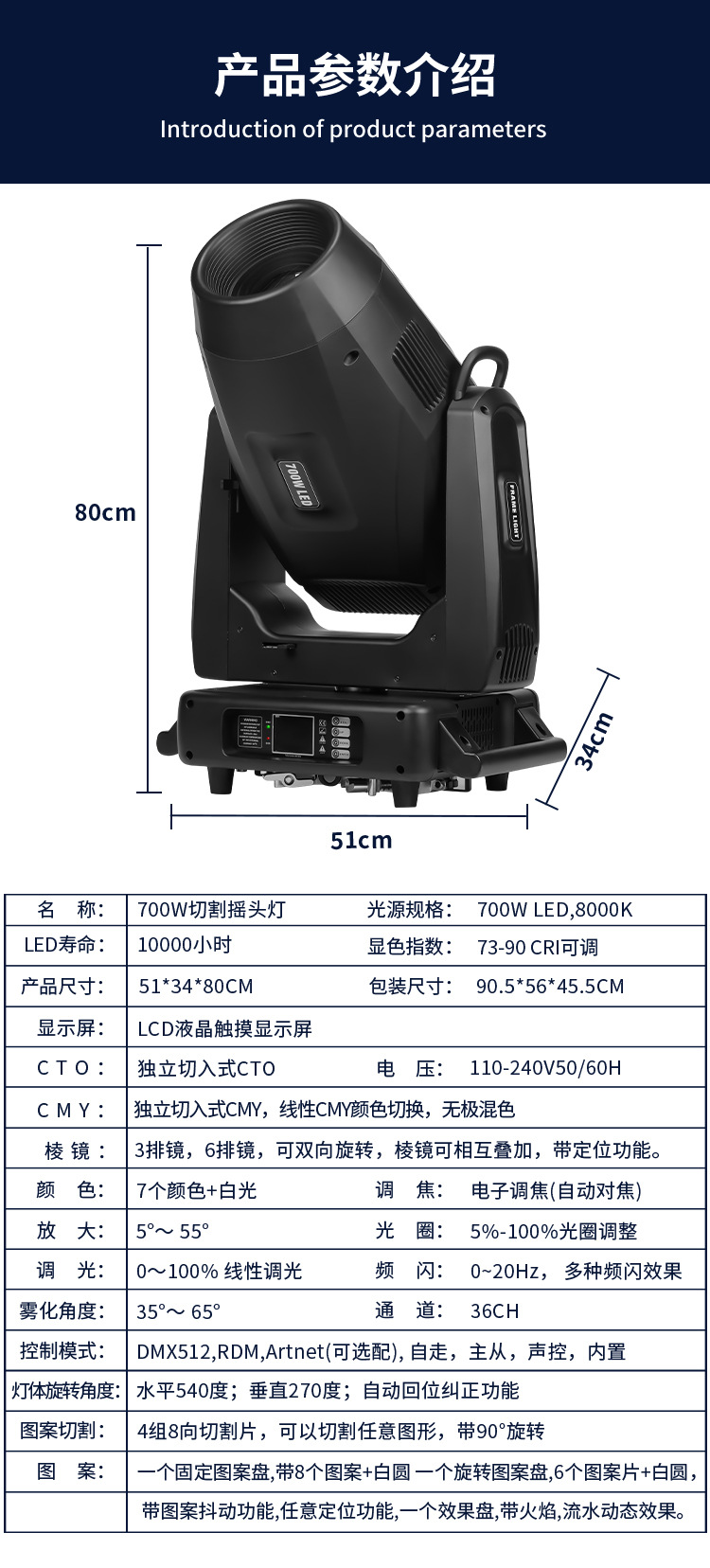Etapa de corte de alta potencia 700W de ingeniería al aire libre haz de luz patrón de rotación de la cabeza móvil luz de la etapa de rendimiento Luz