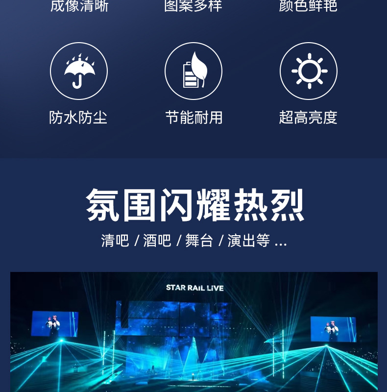 | Potencia de la fuente de luz | Luz láser de animación impermeable 30w sacudiendo la cabeza [embalaje de la caja de aviación],Luz láser de animación impermeable 40w sacudiendo la cabeza [embalaje de la caja de aviación],Luz láser de animación impermeable 50w sacudiendo la cabeza [embalaje de la caja de aviación],Luz láser de animación impermeable 60w sacudiendo la cabeza [embalaje de la caja de aviación],Luz láser de animación impermeable 80w sacudiendo la cabeza [embalaje de la caja de aviación],Luz láser de animación impermeable 100w sacudiendo la cabeza [embalaje de la caja de aviación] |