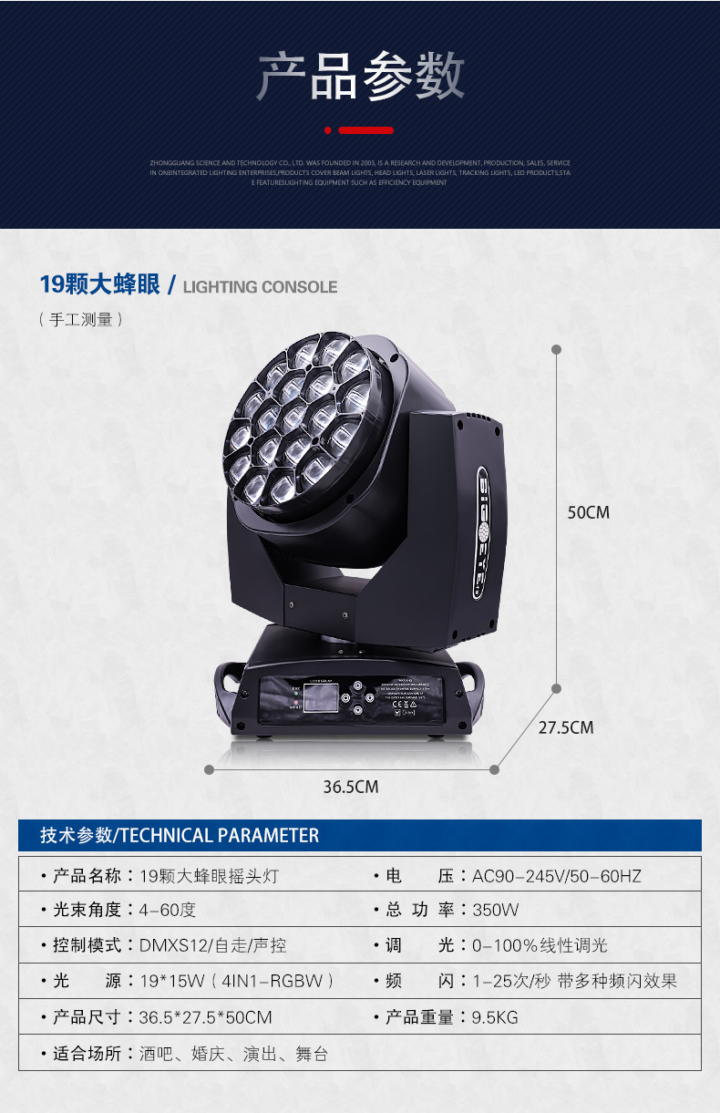 | Poder de la fuente de luz | 19 piezas 15W,19 piezas 40 vatios |