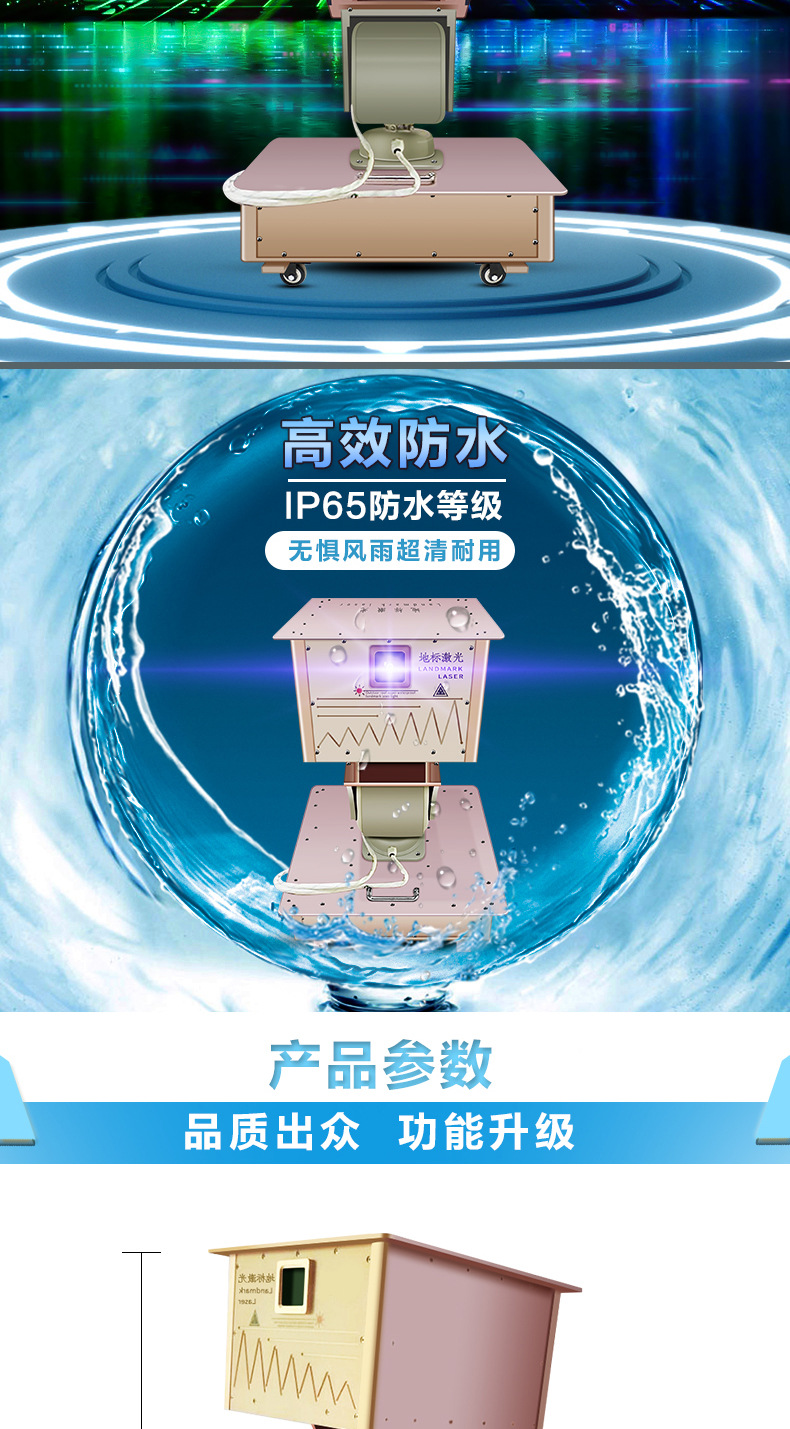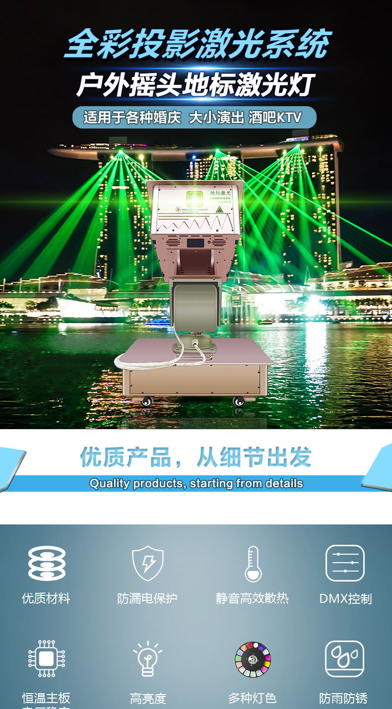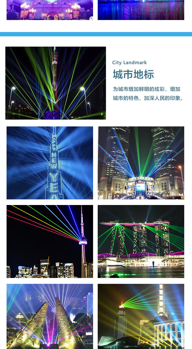 60W al aire libre hito impermeable láser de alta potencia edificio techo iluminación proyecto Hotel proyección agua pantalla láser Luz