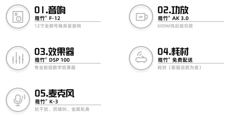 | Lista de embalaje | Audio, amplificador, dispositivo de efectos, micrófono |