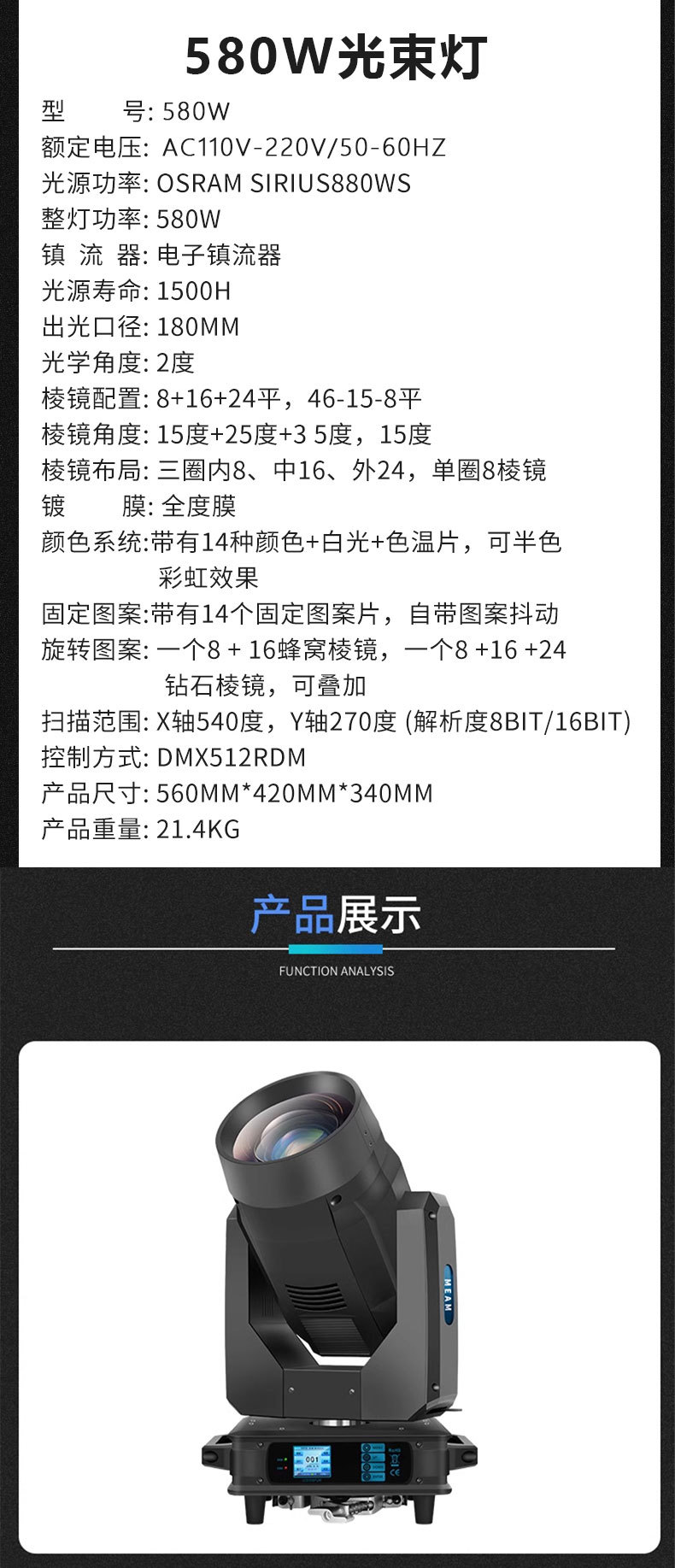 | Número de artículo | Luz de haz 580w |
