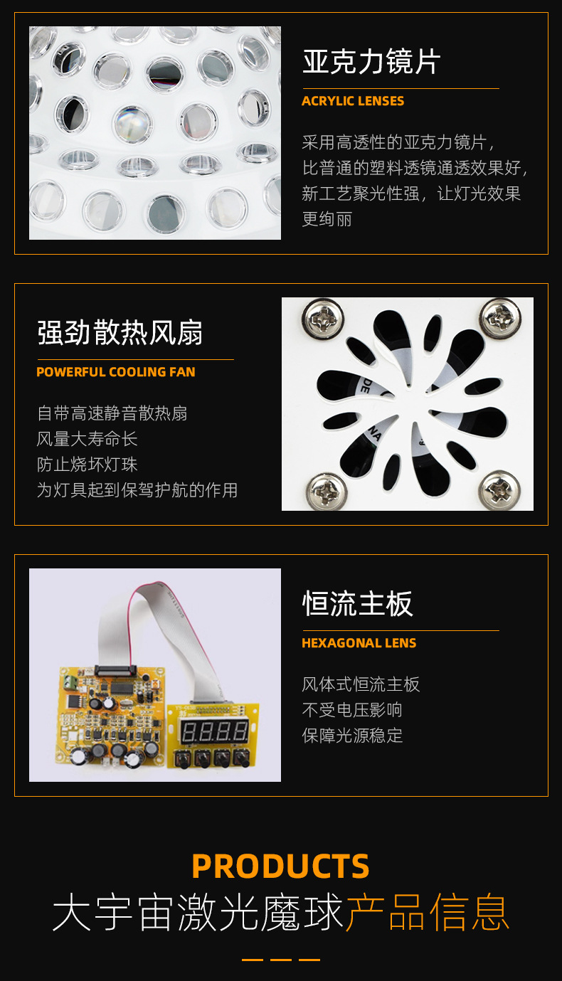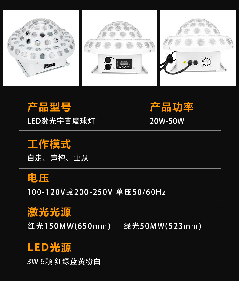 | Potencia de la fuente de luz | Bola mágica del universo LED,Bola mágica del universo LED (control remoto),Diagrama láser de 30 bolas mágicas del universo LED,30 imágenes láser de la bola mágica del universo LED (control remoto) |