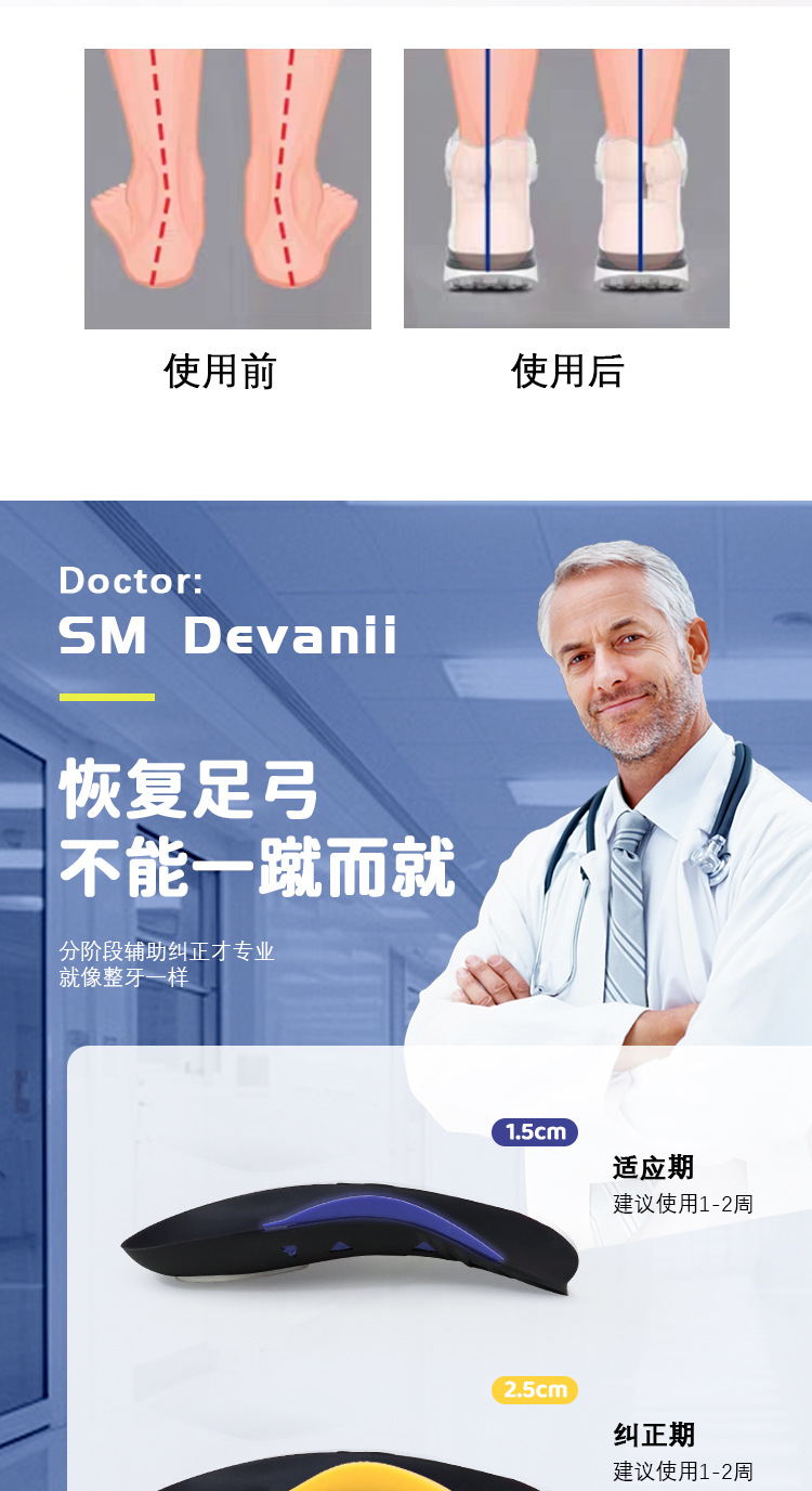 鞋垫不是医疗器械,不能帮助脚骨骼矫正,仅为支撑作用辅助脚掌脚跟穿着让脚更合适更舒适,祝您健康