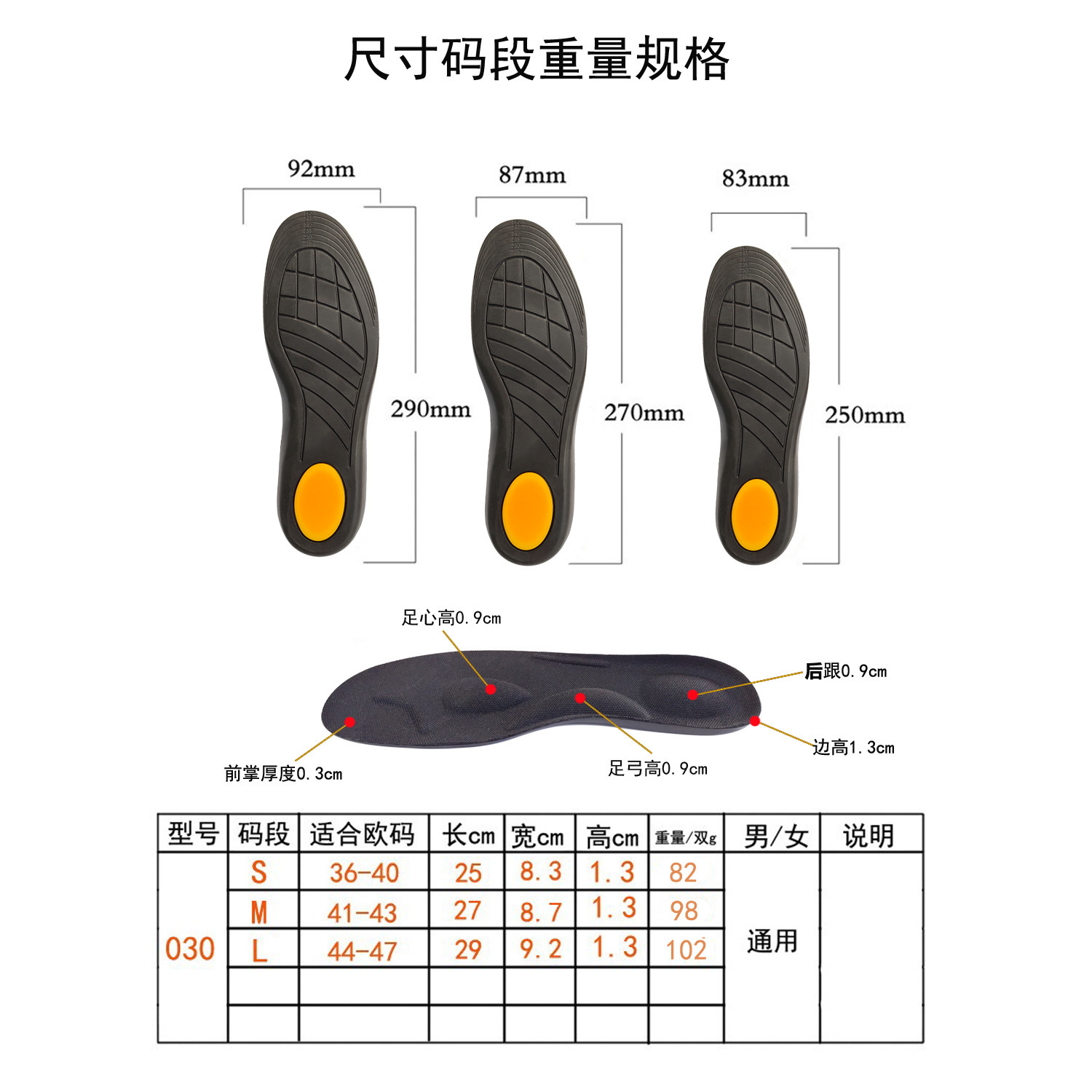 码段:S M L 三个码段(剪裁鞋垫)
