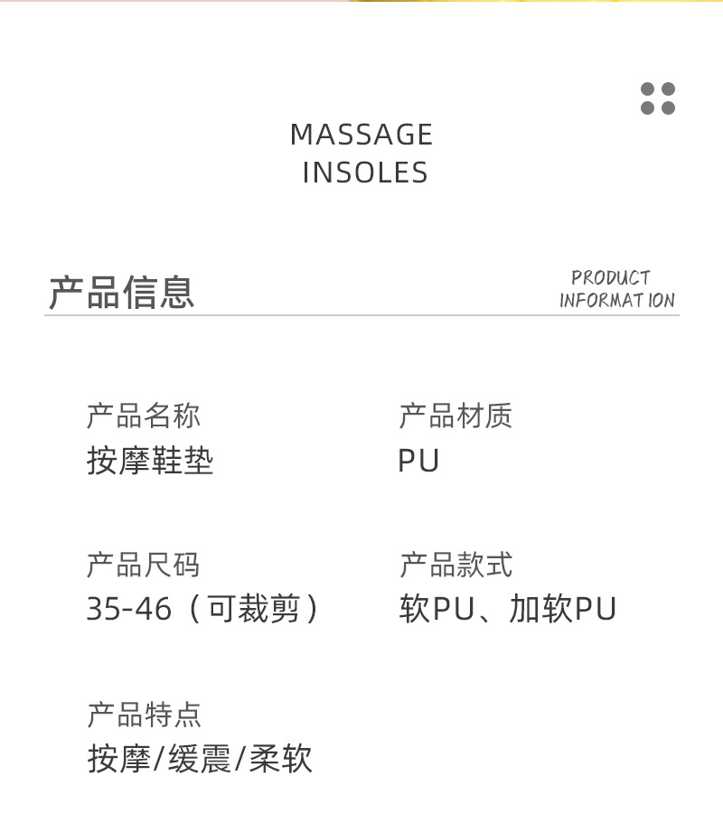 | tamaño | Plantilla de PU talla grande (42-46),Plantilla de PU talla mediana (39-41),Plantilla de PU talla pequeña (35-38),Plantilla de PU con fondo suave talla grande (42-46),Plantilla de PU con fondo blando talla mediana (39-41),Plantilla de PU con fondo suave talla pequeña (35-38),Plantilla de PU con fondo suave 39-40,Plantilla de PU con fondo suave 41-42,Plantilla de PU con fondo suave 43-44 |