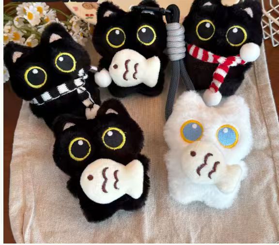 | Color | El gato negro de ojos grandes sostiene el pescado + la cuerda negra, el gato blanco de ojos grandes sostiene el pescado + la cuerda rosa, el gato negro de ojos grandes [bufanda en blanco y negro] + la cuerda negra, el gato negro de ojos grandes [bufanda Roja y blanca] + la cuerda negra |