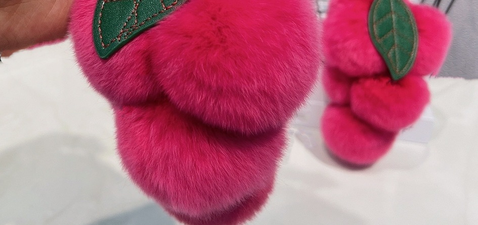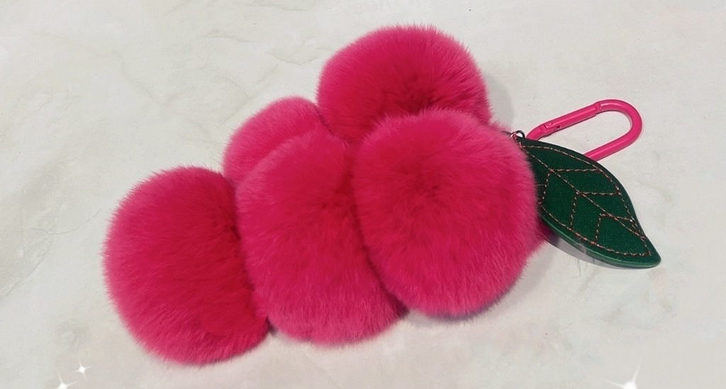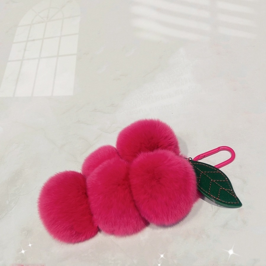 Super auténtico color fresa ~ real Rex conejo piel uva llavero coche colgante ins lindo bola de peluche bolsa adornos