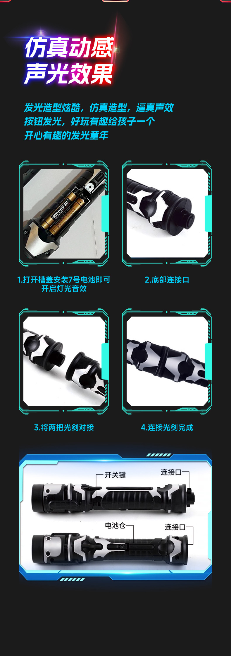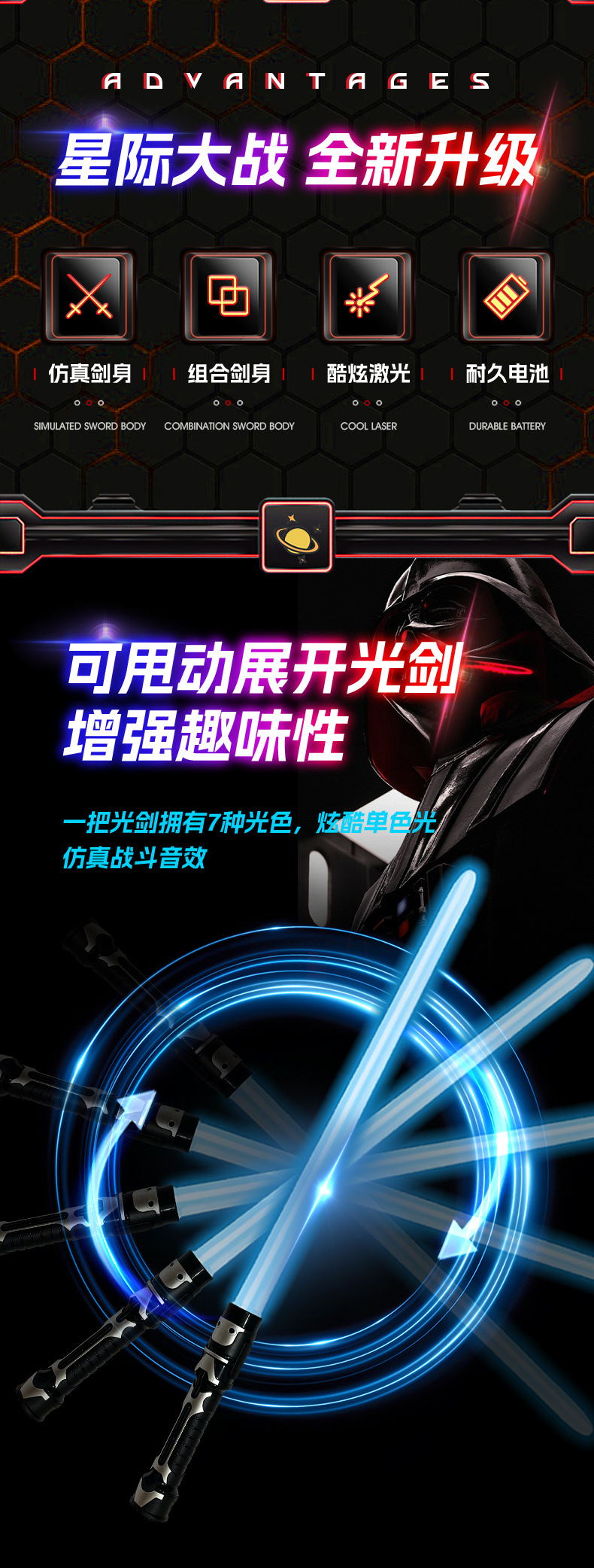 | Especificaciones | Espada de luz retráctil roja + azul (sin efecto de sonido), espada de luz retráctil de dos en uno de siete colores (con efecto de sonido), espada de luz retráctil de siete colores (con efecto de sonido), espada de luz retráctil azul (sin efecto de sonido), espada de luz retráctil Roja (sin efecto de sonido), espada de luz retráctil roja + azul (sin efecto de sonido), espada de luz retráctil roja + azul (sin efecto de sonido), espada de luz retráctil roja + azul (sin efecto de sonido) |