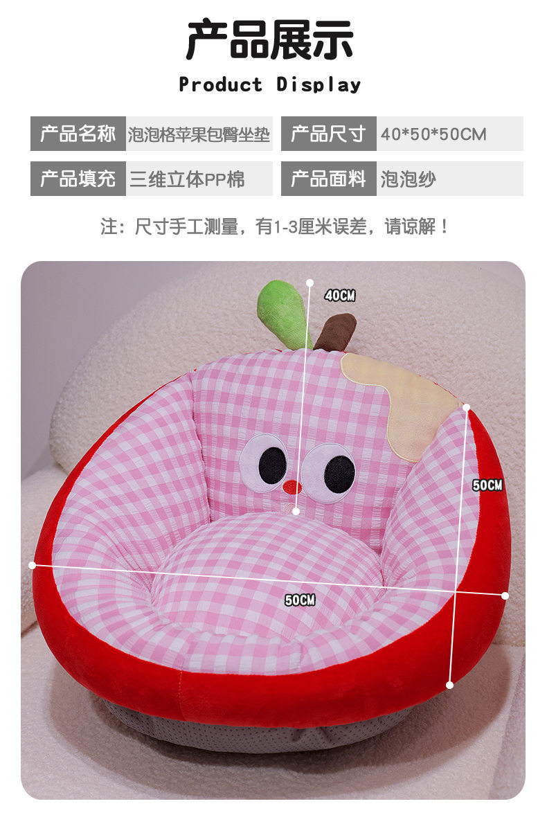 | Color | Cojín de cadera de manzana de burbuja rosa, cojín de cadera de manzana de burbuja amarilla, cojín de cadera de manzana de burbuja azul, cojín de cadera de manzana de burbuja verde, cojín de cadera de manzana de burbuja verde |