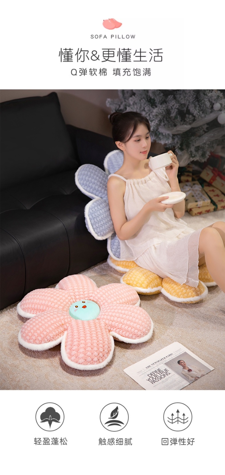 Cartoon cordero cachemire flor de oficina espesa cojín de silla cojín de arroz dormitorio cojín de cama cojín de cama