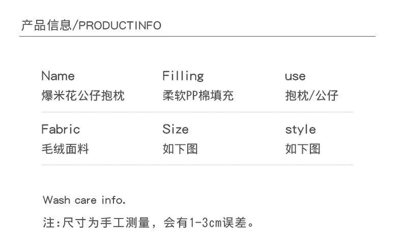 | Especificaciones | Palomitas amarillas, palomitas verdes, palomitas moradas |