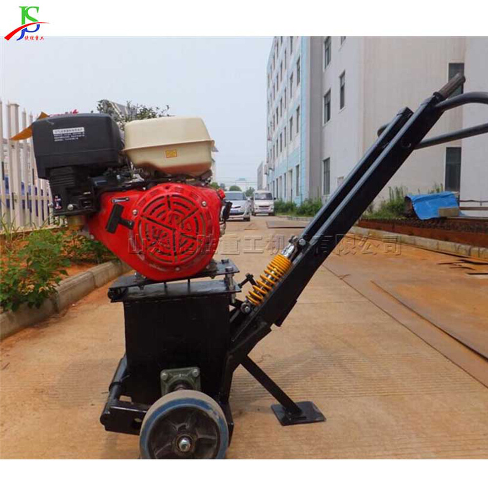 其工作原理是由动力强劲的汽油发动机作为动力源,通过三/角带带动主轴高速旋转,手摇升降手轮使主轴下降,切割裂缝,前行走轮采用万向轮,使整机在工作中可以按照裂缝自然形成的曲线进行切槽,装有匹配的风扇页还可以用做开槽后对槽里灰尘的清理,实现一机多用的目的。