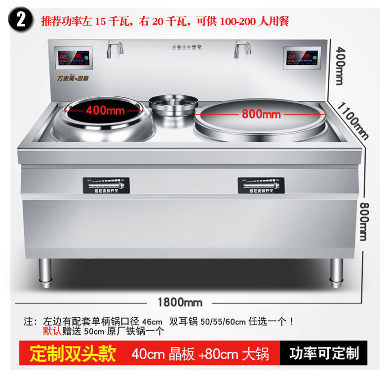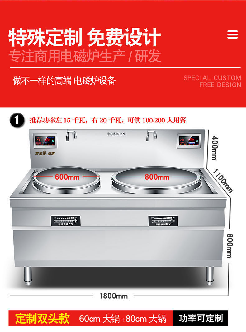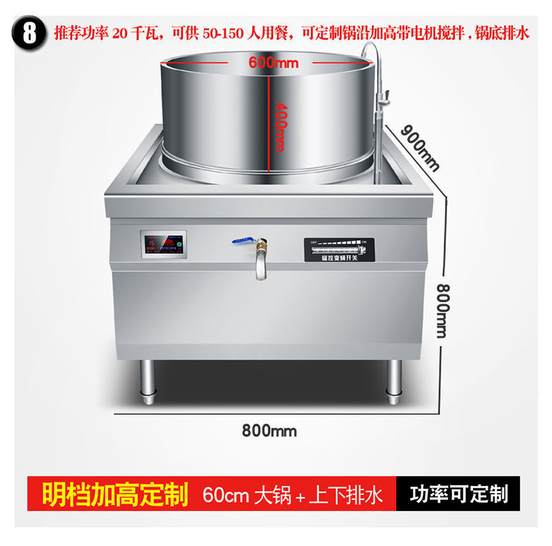 | Especificaciones | 60 cocinas grandes - 220V - 6kw, 70 cocinas grandes - 220V - 8kw, 60 cocinas grandes - 380v - 15kw, 70 cocinas grandes - 380v - 15kw, 80 cocinas grandes - 380v - 20kw, 90 cocinas grandes - 380v - 25kw, 1 metro de cocinas grandes - 380v - 30kw, 1,2 metros de cocinas grandes - 380v - 30kw, 400 cocinas pequeñas + 70 ollas grandes - 380v - 15kw pequeñas + 400 cocinas pequeñas 80 ollas grandes 380v15 + 20kw, 400 ollas pequeñas fritas + 90 ollas grandes - 380v15 + 25kw, 400 ollas pequeñas fritas + 1 metro ollas grandes 380v15 + 30kw, 60 ollas / doble capa más 10cm - 380v - 15kw, 80 ollas / doble capa más 20cm - 380v - 15kw, doble cabeza 60 ollas grandes - 380v - doble 15kw, doble cabeza 70 ollas grandes - 380v - doble 15kw, doble cabeza 80 ollas grandes - 380v - doble 20kw, doble cabeza 90 ollas grandes - 25kw grandes, doble cabeza 1 - 380v - doble cabeza doble 30kw |