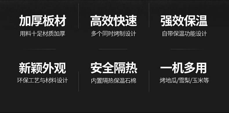 | Especificaciones (largo * ancho * alto) | 带脚_9孔保温烧柴火/木炭普通款,带脚_9孔保温烧柴火/木炭加厚款,带脚_9孔保温烧柴火/木炭特厚款,带脚_9孔保温烧煤气加厚款,带脚_9孔保温烧柴火/木炭不锈钢,带脚_9孔保温烧煤气不锈钢,带脚_11孔保温烧柴火/木炭普通款,带脚_11孔保温烧柴火/木炭加厚款,带脚_11孔保温烧柴火/木炭特厚款,带脚_11孔保温烧煤气加厚款,带脚_11孔保温烧柴火/木炭不锈钢,带脚_11孔保温烧煤气不锈钢,带脚_7孔保温烧柴火/木炭,带脚_8孔带锅烧柴火/木炭,带脚_烤梨子专用9孔柴火/木炭,带脚_烤梨子专用9孔烧煤气不锈钢,带脚_叫花鸡烤炉7孔(16cm超大直径),带脚_电热台式地瓜炉,带脚_电热台式地瓜炉带保温展示柜,带脚_加厚定做3大孔6小孔柴火木炭款,带轮子_9孔保温烧柴火/木炭普通款,带轮子_9孔保温烧柴火/木炭加厚款,带轮子_9孔保温烧柴火/木炭特厚款,带轮子_9孔保温烧煤气加厚款,带轮子_9孔保温烧柴火/木炭不锈钢,带轮子_9孔保温烧煤气不锈钢,带轮子_11孔保温烧柴火/木炭普通款,带轮子_11孔保温烧柴火/木炭加厚款,带轮子_11孔保温烧柴火/木炭特厚款,带轮子_11孔保温烧煤气加厚款,带轮子_11孔保温烧柴火/木炭不锈钢,带轮子_11孔保温烧煤气不锈钢,带轮子_7孔保温烧柴火/木炭,带轮子_8孔带锅烧柴火/木炭,带轮子_烤梨子专用9孔柴火/木炭,带轮子_烤梨子专用9孔烧煤气不锈钢,带轮子_叫花鸡烤炉7孔(16cm超大直径),带轮子_加厚定做3大孔6小孔柴火木炭款,带脚_新款不锈钢地瓜炉9孔(柴火),带脚_新款不锈钢地瓜炉9孔(燃气),带脚_新款不锈钢地瓜炉12孔(柴火),带脚_新款不锈钢地瓜炉12孔(燃气),带脚_新款不锈钢地瓜炉双层(电热),带脚_新款不锈钢地瓜炉三层(电热),带脚_新款不锈钢9大孔柴火款带保温,带脚_新款不锈钢9大孔燃气款带保温,带脚_新款不锈钢12大孔柴火款带保温,带脚_新款不锈钢12大孔燃气款带保温 |