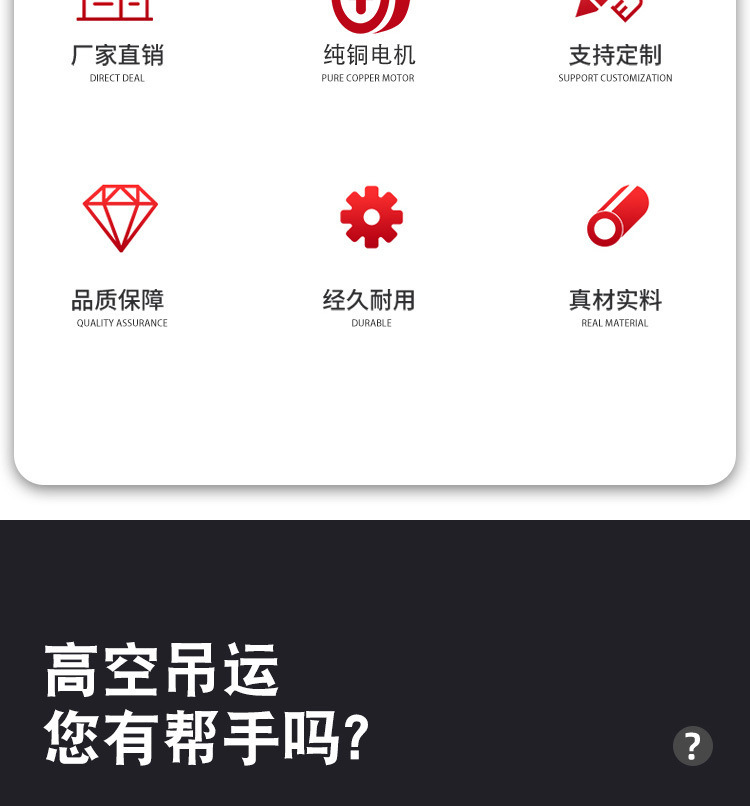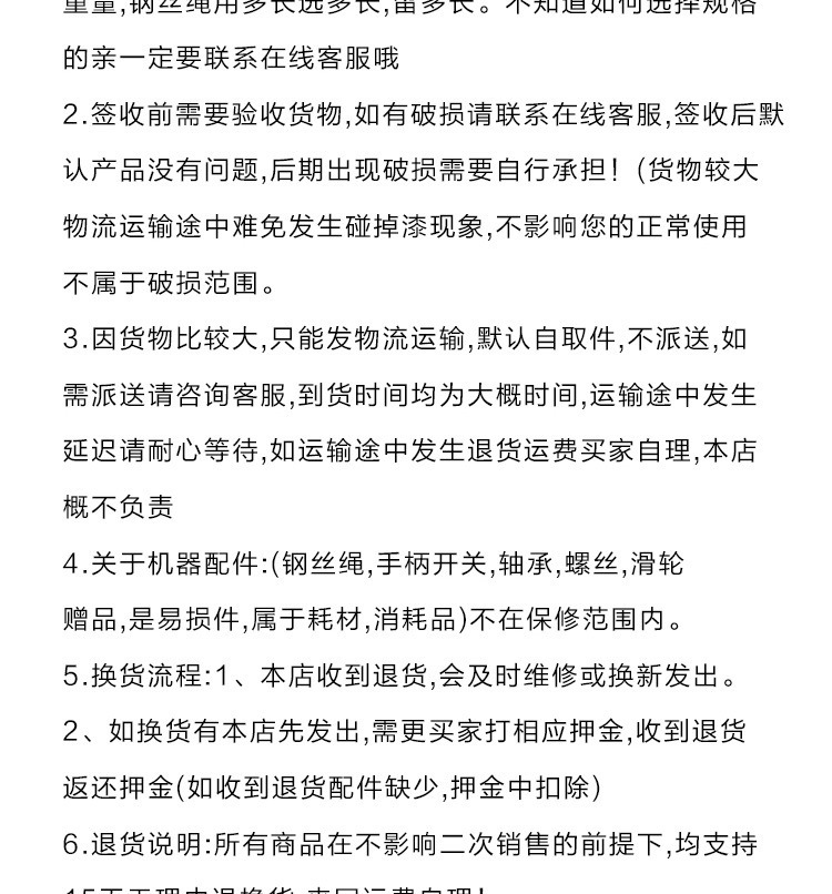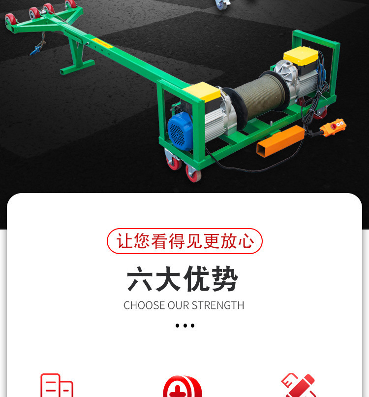 | Especificaciones y modelos | 500kg 100m cuatro ruedas, 500kg 120m cuatro ruedas, 500kg 150m cuatro ruedas, 750kg 100m cuatro ruedas, 750kg 120m cuatro ruedas, 500kg 100m dos ruedas, 500kg 100m dos ruedas, 500kg 120m dos ruedas, 500kg 120m dos ruedas, 500kg 120m dos ruedas, Dos ruedas de 500kg 150m para uso dual móvil, cuatro ruedas de 500kg 150m para uso dual móvil, dos ruedas de 750kg 100m para uso dual móvil, cuatro ruedas de 750kg 100m para uso dual móvil, dos ruedas de 750kg 120m para uso dual móvil, cuatro ruedas de 750kg 150m para uso dual móvil, cuatro ruedas de 750kg 150m para uso dual móvil, Motor único 500 jin 120 m cuatro ruedas, motor único 800 jin 120 m cuatro ruedas, motor único 900 jin 120 m cuatro ruedas, control remoto inalámbrico + interruptor cableado 100 m |