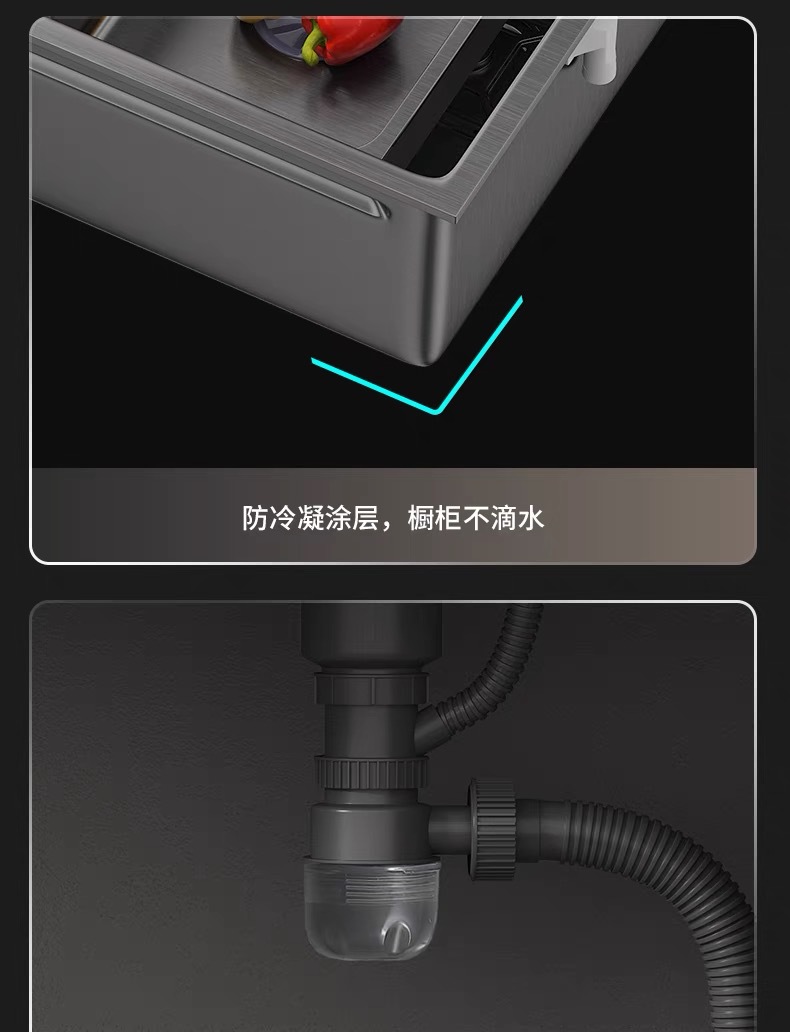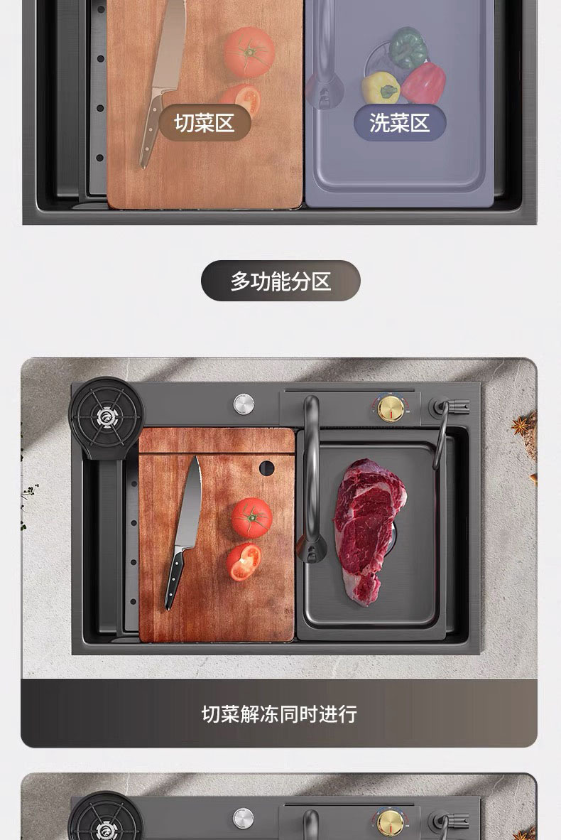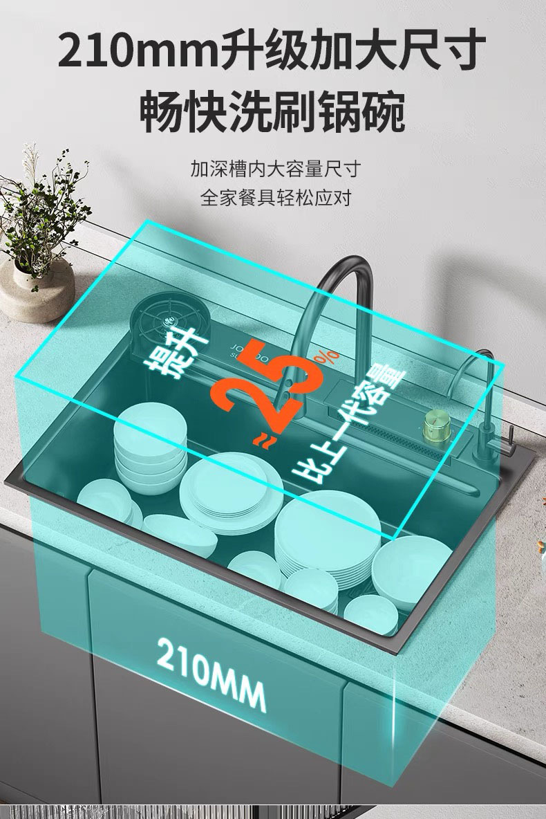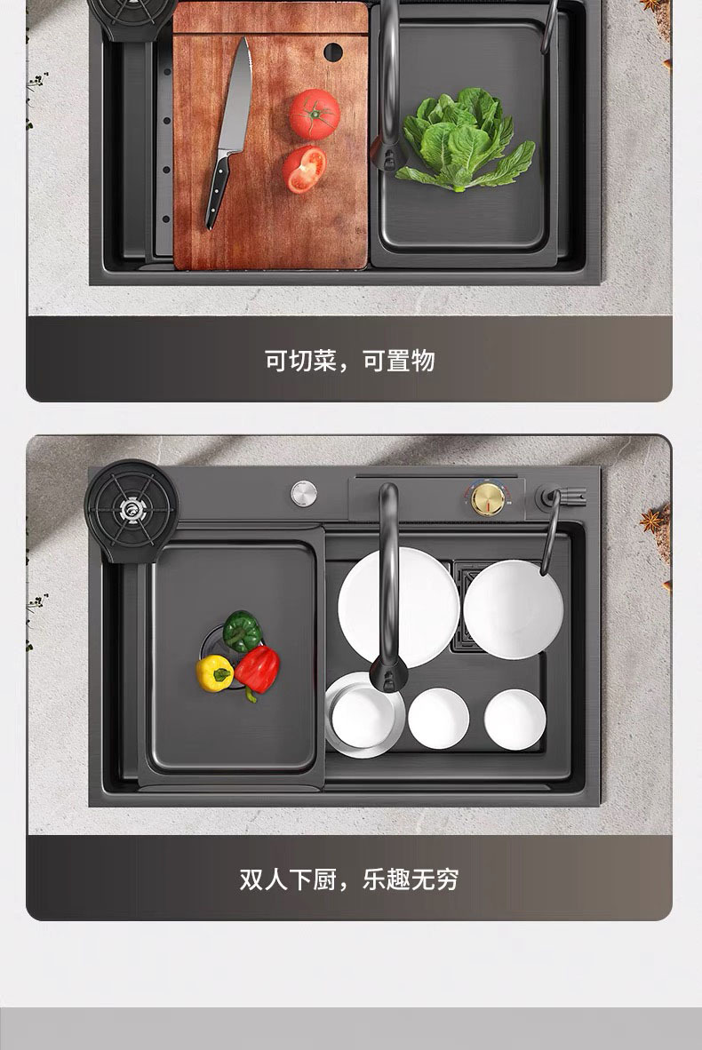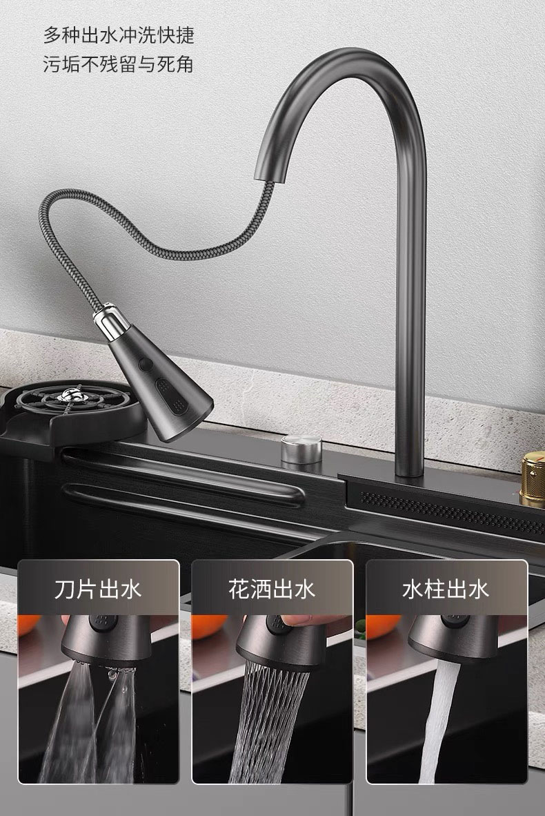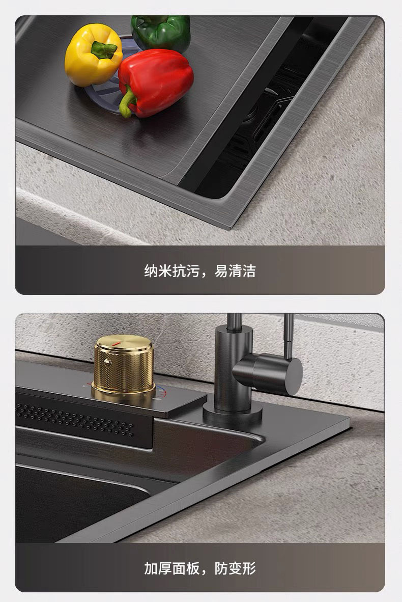 Whale Waterfall fregadero cocina gran ranura única panal nano hogar visualización digital teclas de piano de lluvia integrado conjunto completo