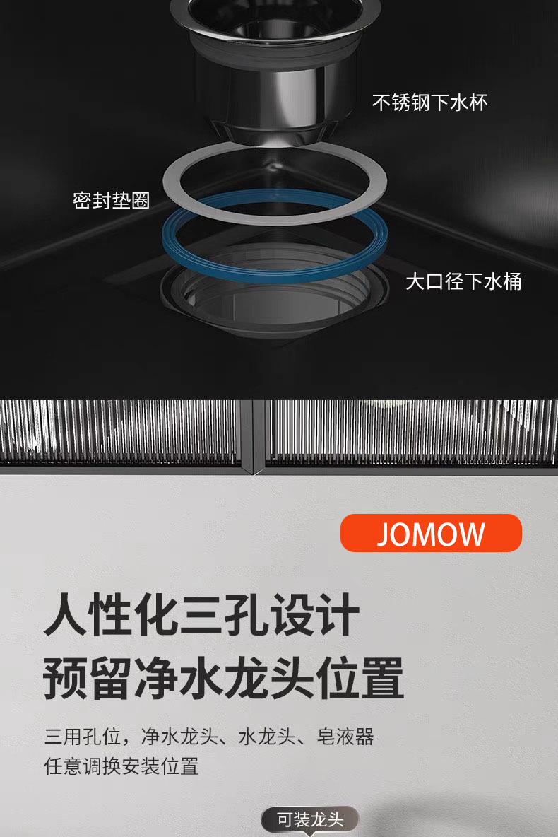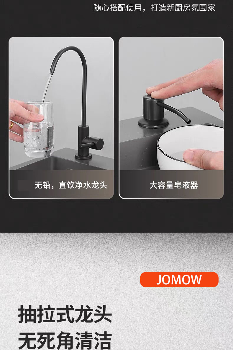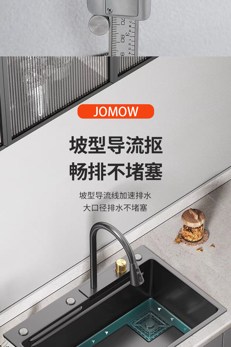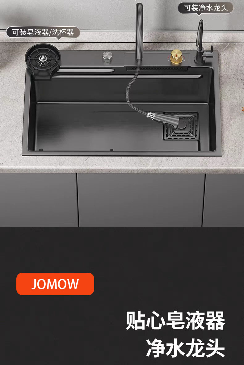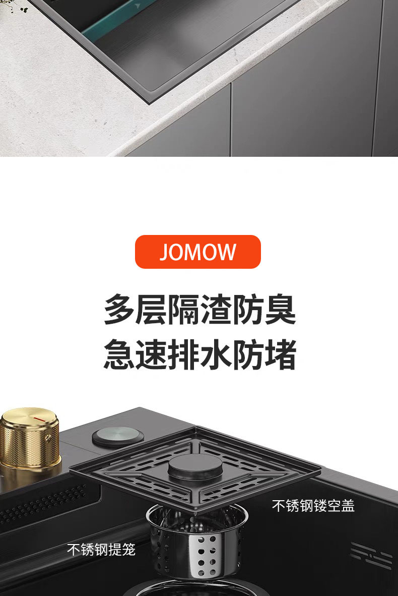 JOMOW cocina 304 cascada de acero inoxidable piano pantalla digital fregadero inteligente grande de un solo tanque fregadero doméstico lavabo de verduras