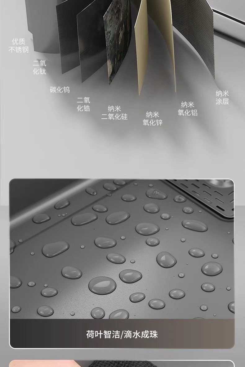 Cocina gran arma de tanque único gris negro King Kong lluvia volante cascada fregadero nano acero inoxidable lavabos domésticos lavabos sin platos