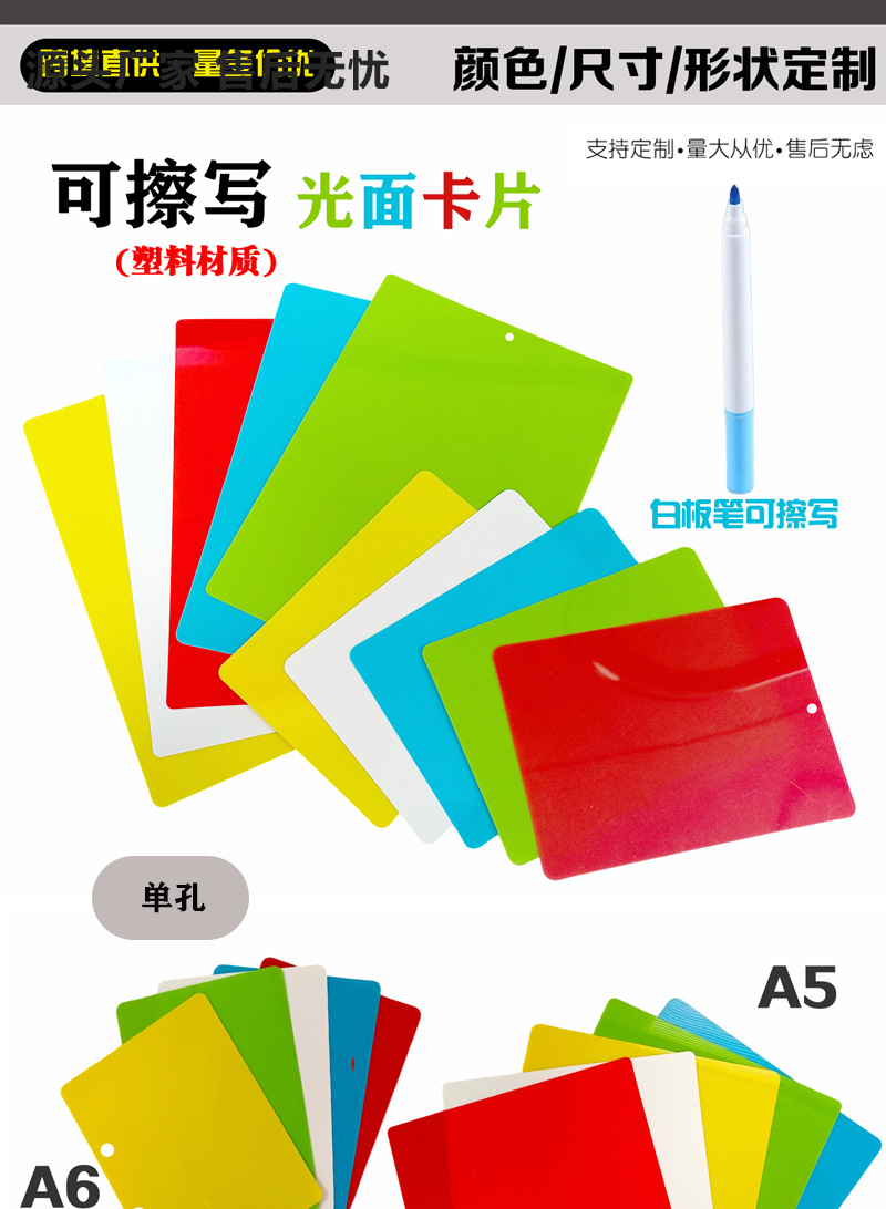 | Colores | Tarjeta A4 brillante de PP blanco borrable,Tarjeta A4 brillante PP roja borrable,Tarjeta A4 brillante PP amarilla borrable,Tarjeta A4 brillante PP azul borrable,Tarjeta A4 brillante PP verde borrable,Tarjeta A5 brillante PP blanca borrable,Tarjeta A5 brillante PP roja borrable,Tarjeta A5 brillante PP amarilla borrable,Tarjeta A5 brillante PP azul borrable,Tarjeta A5 brillante PP verde borrable,Tarjeta A6 brillante PP blanca borrable,Tarjeta A6 brillante PP roja borrable,Tarjeta A6 brillante PP amarilla borrable,Tarjeta A6 brillante PP azul borrable,Tarjeta A6 brillante PP verde borrable,Tarjeta A7 brillante PP blanca borrable,Tarjeta A7 brillante PP roja borrable,Tarjeta A7 brillante PP amarilla borrable,Tarjeta A7 brillante PP azul borrable,Tarjeta A7 brillante PP verde borrable,Tarjeta blanca brillante borrable (5,4X8,6cm),Tarjeta colgante A4 recta blanca brillante de doble agujero,Tarjeta colgante A4 horizontal blanca brillante con doble agujero,Tarjeta colgante A5 recta blanca brillante de doble agujero,Tarjeta colgante A5 horizontal blanca brillante con doble agujero,Tarjeta colgante A6 recta blanca brillante de doble agujero,Tarjeta colgante A6 horizontal blanca brillante con doble agujero,Tarjeta colgante A7 recta blanca brillante de doble agujero,Tarjeta colgante A7 blanca brillante estilo horizontal de doble agujero,(5.4 x 8.6 cm) Etiqueta Colgante Horizontal Blanca Brillante con Doble Agujero,(5.4 x 8.6 cm) Etiqueta colgante de doble orificio, borde recto, blanco brillante,Tarjeta colgante A5 recta roja brillante de doble agujero,Tarjeta colgante A5 horizontal roja brillante con doble agujero,Tarjeta colgante A6 recta roja brillante de doble agujero,Tarjeta colgante A6 horizontal roja brillante de doble agujero,Tarjeta colgante A7 recta roja brillante de doble agujero,Tarjeta colgante A7 roja brillante estilo horizontal de doble agujero,Tarjeta colgante A5 recta de doble agujero amarilla brillante,Tarjeta colgante A5 horizontal amarilla brillante con doble agujero,Tarjeta colgante A6 recta de doble agujero amarilla brillante,Tarjeta colgante A6 horizontal amarilla brillante con doble agujero,Tarjeta colgante A7 recta de doble agujero amarilla brillante,Tarjeta colgante A7 horizontal amarilla brillante de doble agujero,Tarjeta colgante A5 recta verde brillante con doble agujero,Tarjeta colgante A5 horizontal verde brillante con doble agujero,Tarjeta colgante A6 recta verde brillante de doble agujero,Tarjeta colgante A6 horizontal verde brillante con doble agujero,Tarjeta colgante A7 recta verde brillante de doble agujero,Tarjeta colgante A7 horizontal verde brillante de doble agujero,Tarjeta colgante A4 brillante blanca recta de un solo orificio,Tarjeta colgante A4 horizontal de un solo orificio, color blanco brillante,Tarjeta colgante A5 brillante blanca recta de un solo orificio,Tarjeta colgante A5 horizontal de un solo orificio, color blanco brillante,Tarjeta colgante A6 brillante blanca recta de un solo orificio,Tarjeta colgante A6 horizontal de un solo orificio, color blanco brillante,Tarjeta colgante A7 blanca brillante recta de un solo orificio,Tarjeta colgante A7 blanca brillante de estilo horizontal de un solo orificio,(5.4 x 8.6 cm) Etiqueta colgante de un solo orificio, borde recto, blanco brillante,(5.4 x 8.6 cm) Etiqueta Colgante Horizontal Blanca Brillante con Un Solo Agujero,Clip pequeño de publicidad POP (8*11CM),Clip pop blanco (8,5*16,5 CM) |