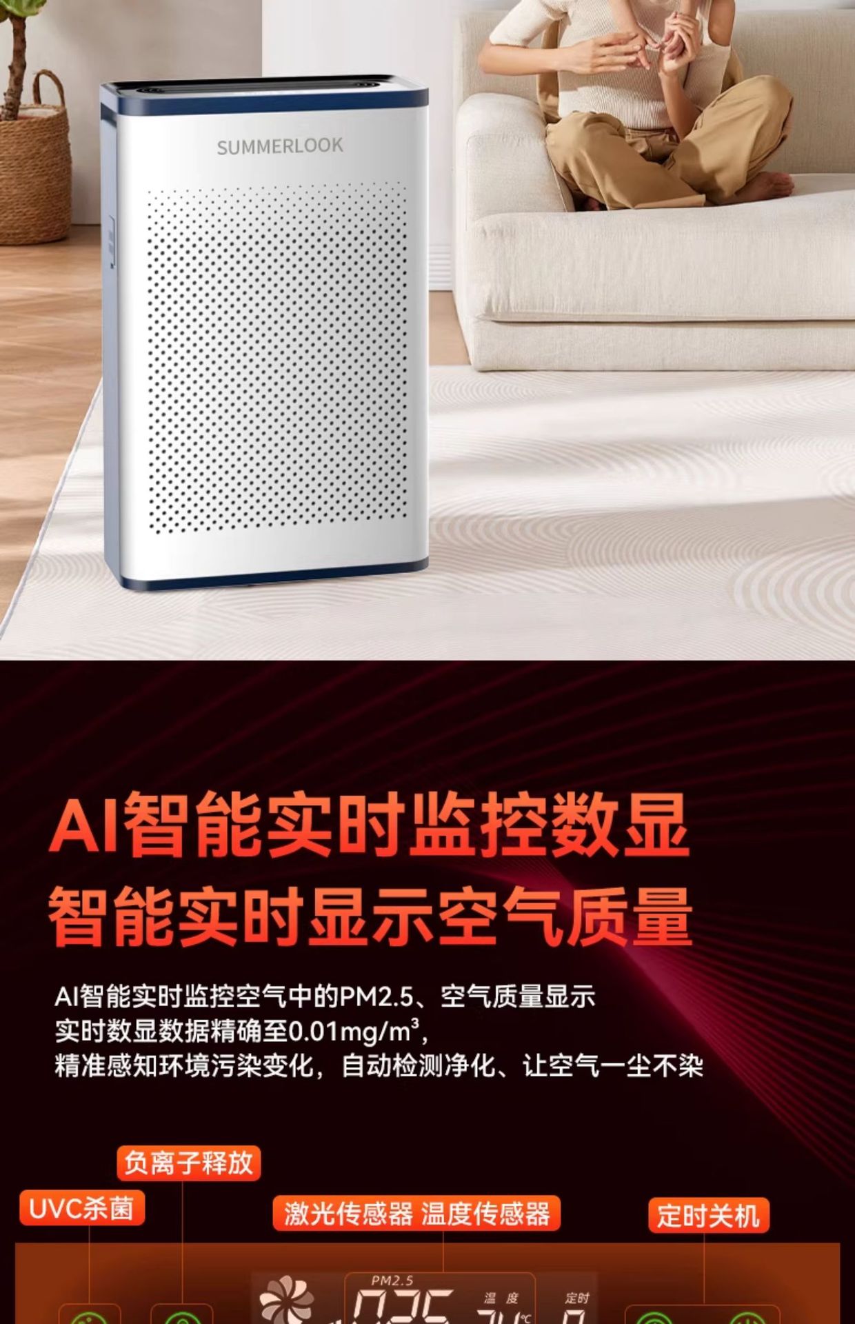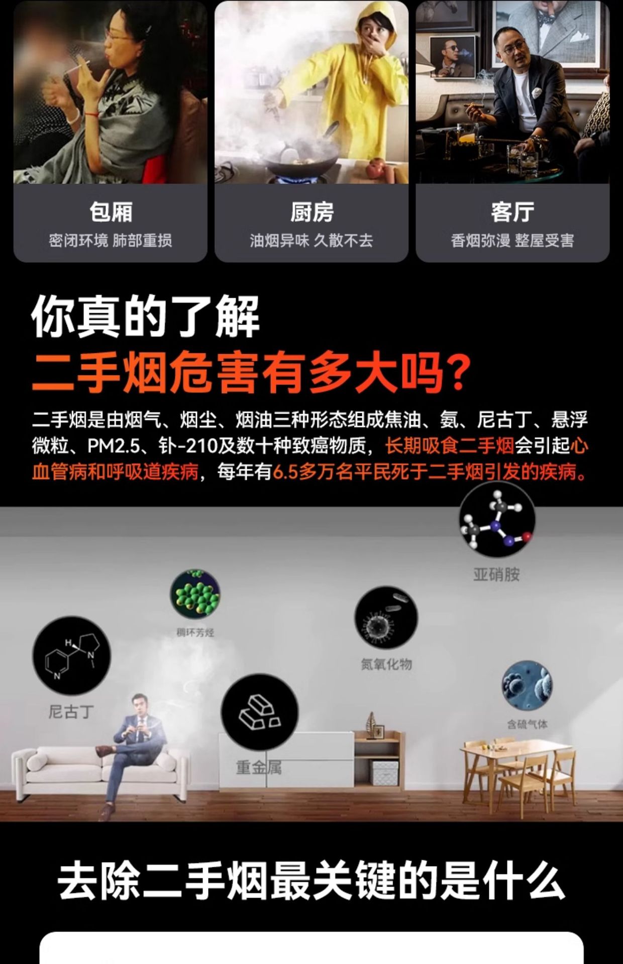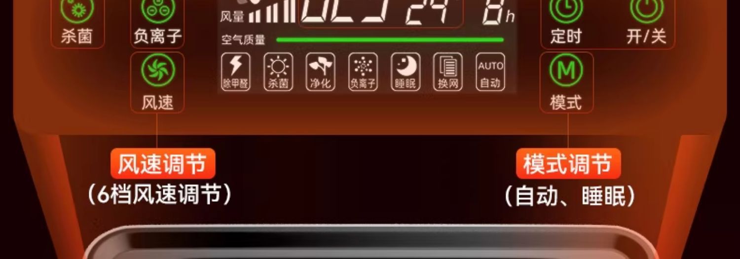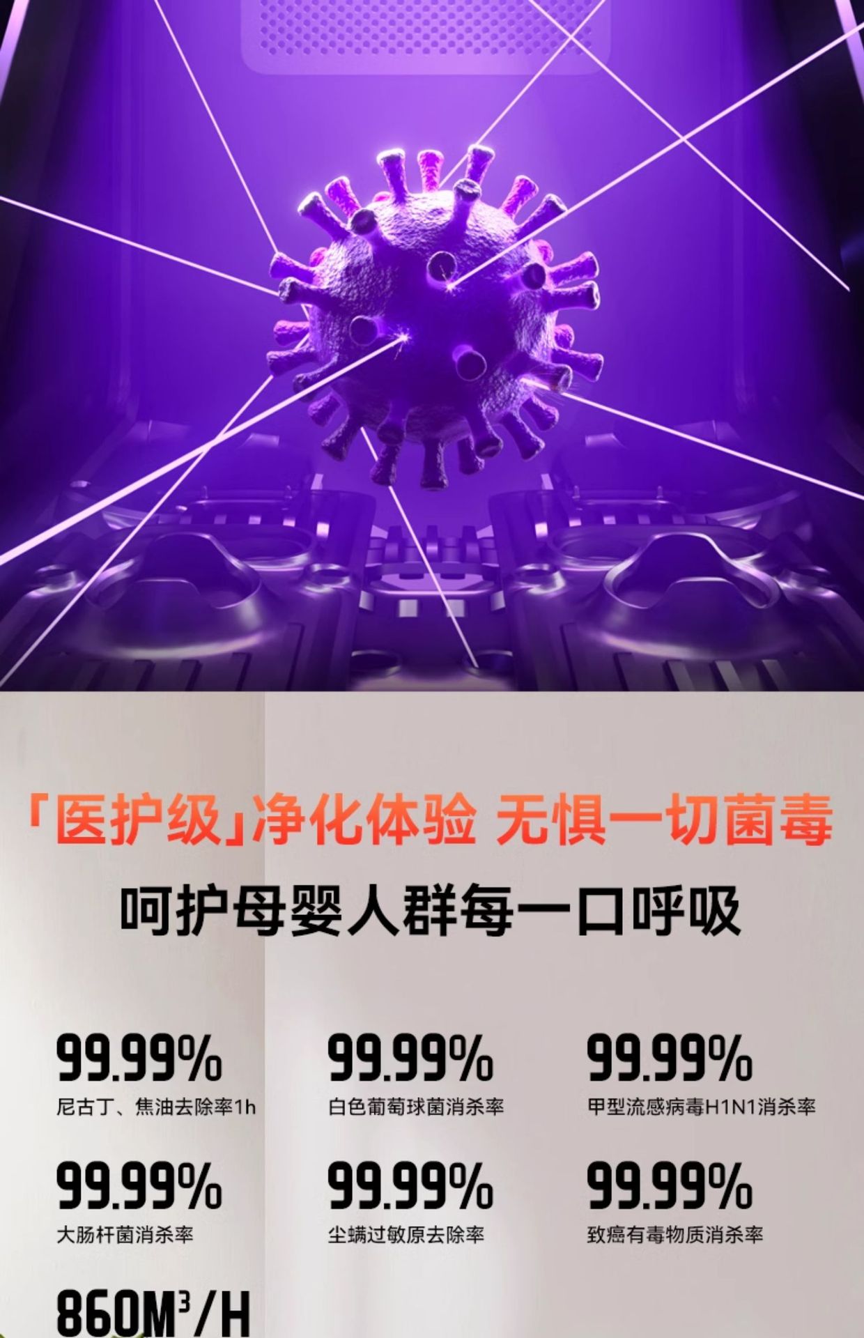 | Función | desinfección, esterilización, eliminación de partículas, desodorización, eliminación de COV, eliminación de humo, eliminación de polvo, prevención de niebla, prevención de virus, eliminación de formaldehído, inhalación de pelo de gato, eliminación de polen, eliminación de olor peculiar |