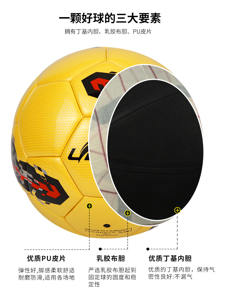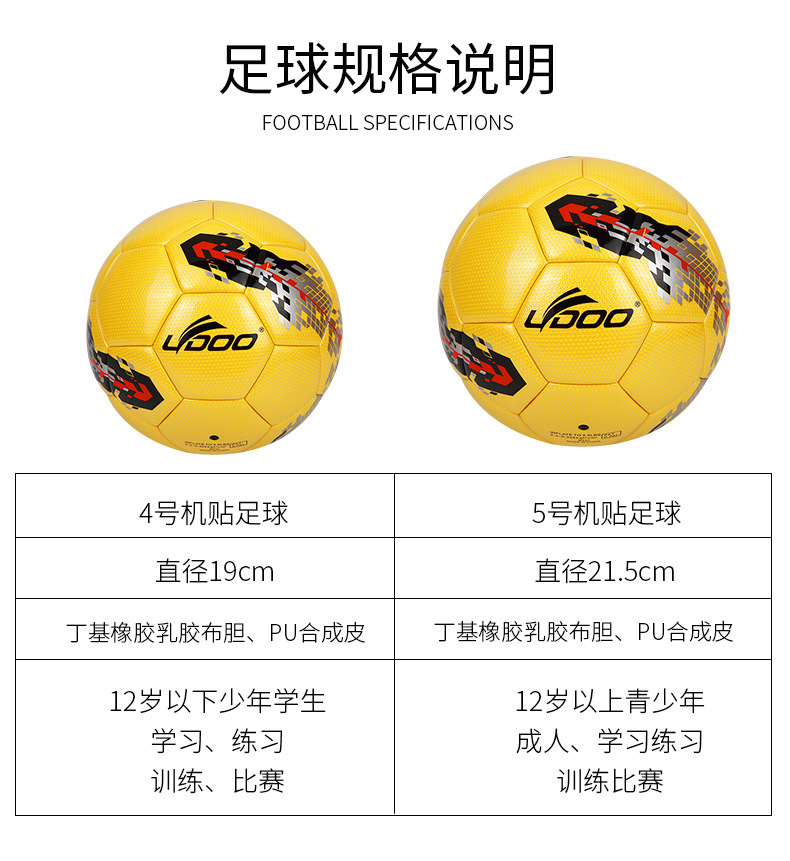 | Tamaño de fútbol | Bola No. 5 (para 11 personas regulares),Bola No. 4 (5-7 personas),Bola No. 3 (para niños),Bola 2 (para niños pequeños) |