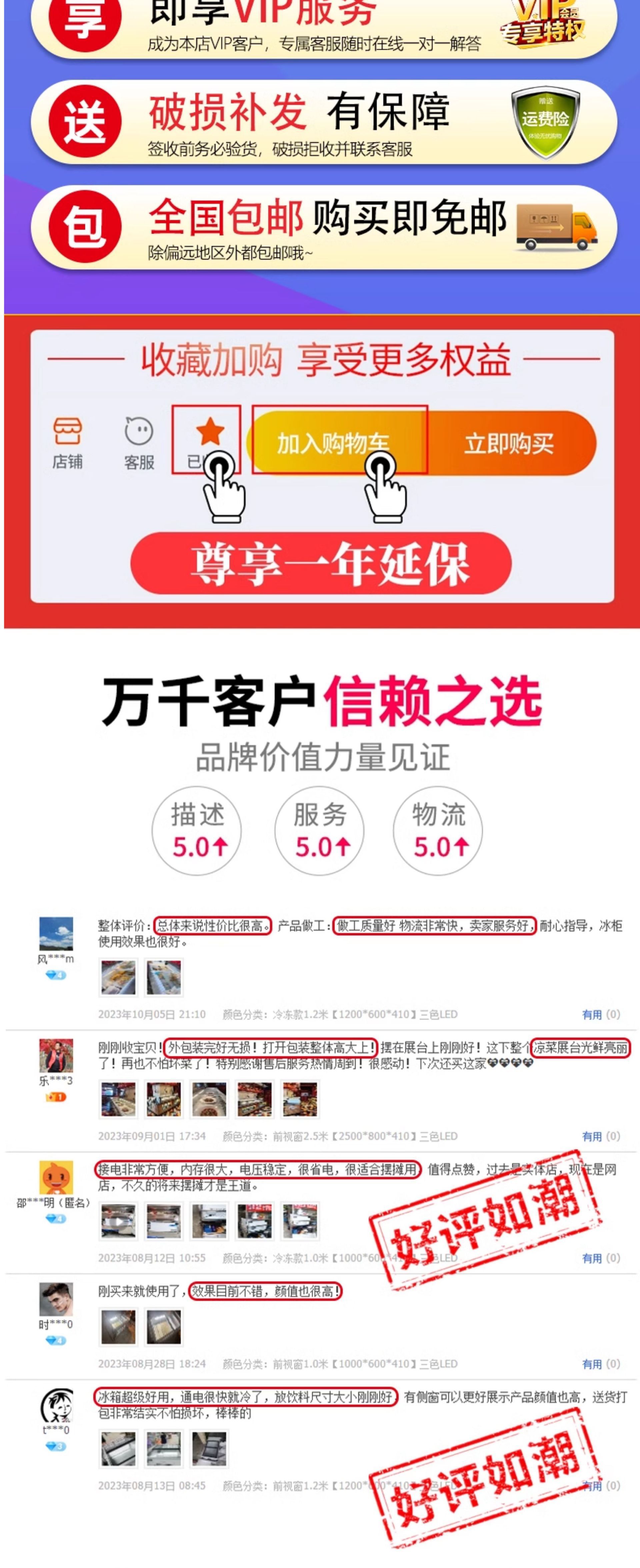 | Especificaciones | 支持异性定制,冷冻款1.0米无视窗5~-15度+三色灯+单边双层置物架【1000*600*410】,冷藏款1.0米前视窗5~-10度+三色灯+单边双层置物架【1000*600*410】,冷冻款1.2米无视窗5~-15度+三色灯+单边双层置物架【1200*600*410】,冷藏款1.2米前视窗5~-10度+三色灯+单边双层置物架【1200*600*410】,冷冻款1.3米无视窗5~-15度+三色灯+单边双层置物架【1300*600*410】,冷藏款1.3米前视窗5~-10度+三色灯+单边双层置物架【1300*600*410】,冷冻款1.3米无视窗5~-15度+三色灯+【1300*730*410】单边双层置物架,冷藏款1.3米前视窗5~-10度+三色灯+【1300*730*410】单边双层置物架,冷冻款1.5米无视窗5~-15度+三色灯+单边双层置物架【1500*600*410】,冷藏款1.5米前视窗5~-10度+三色灯+单边双层置物架【1500*600*410】,冷冻款1.5米无视窗5~-15度+三色灯+【1500*730*410】单边双层置物架,冷藏款1.5米前视窗5~-10度+三色灯+【1500*730*410】单边双层置物架,冷冻款1.6米无视窗5~-15度+三色灯+单边双层置物架【1600*600*410】,冷藏款1.6米前视窗5~-10度+三色灯+单边双层置物架【1600*600*410】,冷冻款1.6米无视窗5~-15度+三色灯+【1600*730*410】单边双层置物架,冷藏款1.6米前视窗5~-10度+三色灯+【1600*730*410】单边双层置物架,冷冻款1.8米无视窗5~-15度+三色灯+单边双层置物架【1800*800*410】,冷藏款1.8米前视窗5~-10度+三色灯+单边双层置物架【1800*800*410】,冷冻款1.8米无视窗5~-15度+三色灯+【1800*730*410】单边双层置物架,冷藏款1.8米前视窗5~-10度+三色灯+【1800*730*410】单边双层置物架,冷冻款2.1米无视窗5~-15度+三色灯+单边双层置物架【2100*800*410】,冷藏款2.1米前视窗5~-10度+三色灯+单边双层置物架【2100*800*410】,冷冻款2.5米无视窗5~-15度+三色灯+单边双层置物架【2500*800*410】,冷藏款2.5米前视窗5~-10度+三色灯+单边双层置物架【2500*800*410】,纯正弦波5800W【可带冰柜冰箱】下单咨询客服,纯正弦波7800W【可带冰柜冰箱】下单咨询客服,纯正弦波6000W【可带冰柜冰箱】下单咨询客服 |