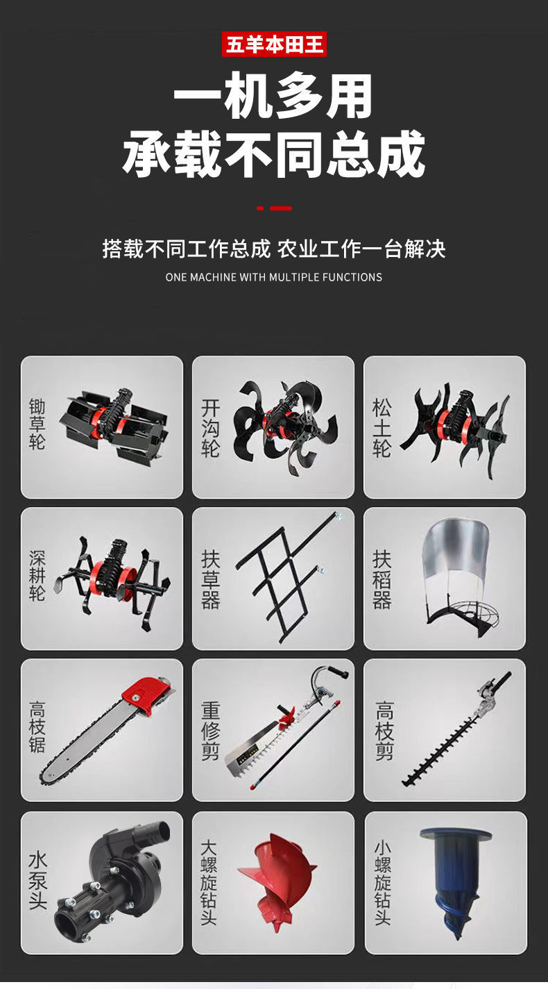 | Especificaciones del producto | Nueva actualización (versión de lujo de alta potencia) Corte de malas hierbas / árboles pequeños + paquete de regalo, nueva actualización (versión de lujo de alta potencia) Corte de césped de carga + cosecha + paquete de regalo, nueva actualización (versión de lujo de alta potencia) Corte de césped de carga + azada + paquete de regalo, nueva actualización (versión de lujo de alta potencia) Corte de césped de carga + azada + paquete de regalo, nueva actualización (versión de lujo de alta potencia) Corte de césped de carga + azada + paquete de regalo, nueva actualización (versión de lujo de alta potencia) Corte de césped de carga + azada + azada + zanja de aflojamiento paquete de regalo, nueva actualización (versión de lujo de alta potencia) Corte de césped de carga + azada + tierra suelta + Sierra de rama alta + paquete de regalo, nueva actualización (versión de lujo de alta potencia) Corte de césped de carga + azada + tierra suelta + zanja + Sierra de rama alta + paquete de regalo, nueva actualización (versión de lujo de alta potencia) Corte de césped de carga + azada + tierra Suelta + cosecha + paquete de regalo, nueva actualización (versión de lujo de alta potencia) Corte de césped de carga + azada + aflojamiento de Tierra + zanja + cosecha + paquete de regalo, nueva actualización (versión de lujo de alta potencia) estilo de carga (conjunto completo multifuncional) + paquete de regalo, nueva actualización (versión insignia de alta potencia) estilo de carga Corte de malas hierbas / árboles pequeños + paquete de regalo, nueva actualización (versión insignia de alta potencia) estilo de carga Corte de césped de carga + azada + paquete de regalo, nueva actualización (versión insignia de alta potencia) estilo de carga + paquete de regalo, nueva actualización (versión insignia de alta potencia) estilo de carga Corte de césped + azada + paquete de regalo, nueva actualización (versión insignia de alta potencia) estilo de carga + paquete de regalo, nueva actualización (versión insignia de alta potencia)versión insignia) Corte de césped de carga + azada + tierra suelta + paquete de regalo, actualización completa (versión insignia de alta potencia) Corte de césped de carga + azada + tierra suelta + zanja + paquete de regalo, nueva actualización (versión insignia de alta potencia) Corte de césped de carga + azada + tierra suelta + Sierra de alta Rama + paquete de regalo, nueva actualización (versión insignia de alta potencia) Corte de césped de carga + azada + tierra suelta + zanja + Sierra de rama alta + paquete de regalo, nueva actualización (versión insignia de alta potencia) Corte de césped de carga + azada + tierra suelta + cosecha + paquete de regalo, nueva actualización (versión insignia de alta potencia) Corte de césped de carga + azada + tierra suelta + zanja + cosecha + paquete de regalo, nueva actualización (versión insignia de ultra alta potencia) soporte (conjunto completo multifuncional) + paquete de regalo |