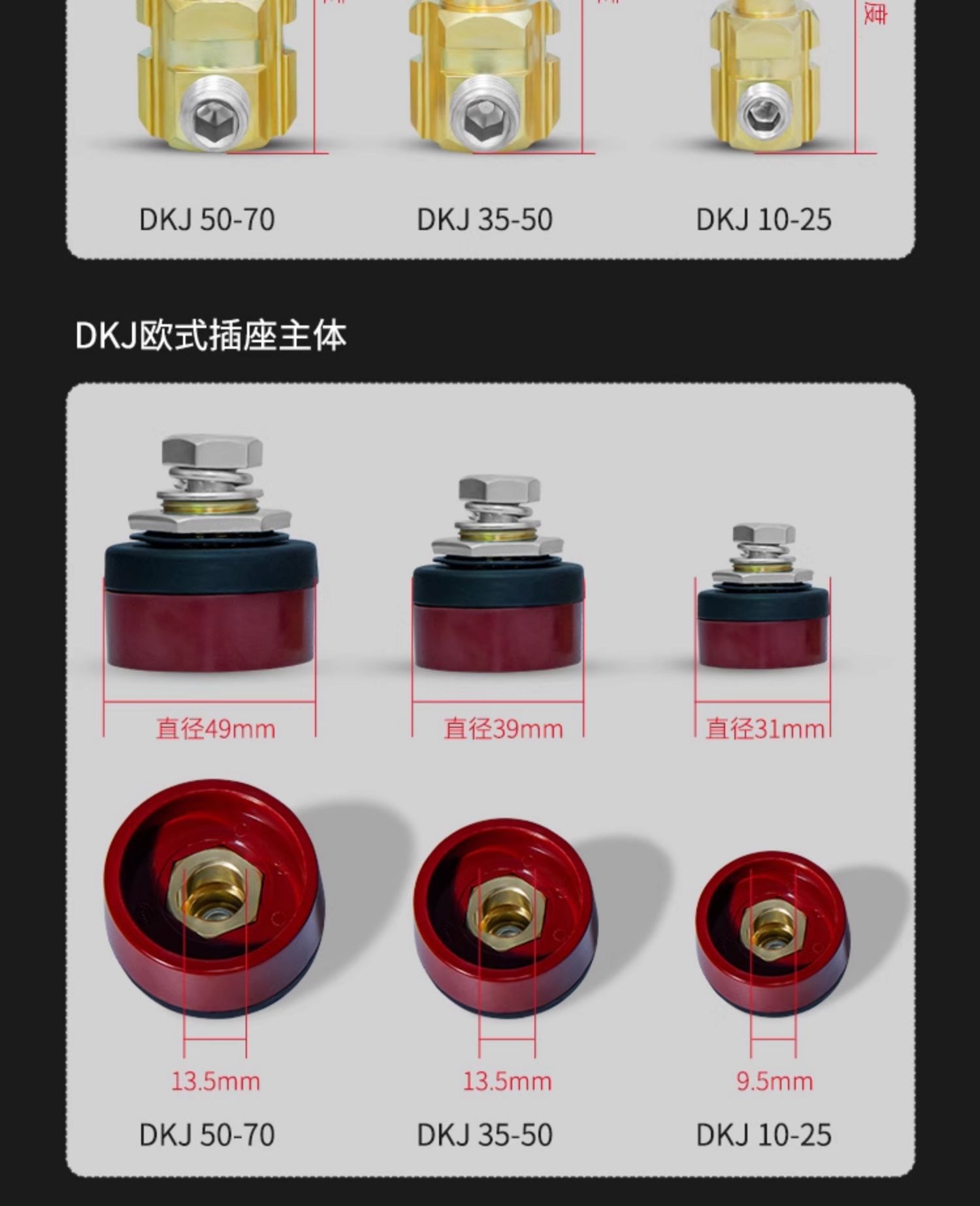 | Conjunto | 10-25一套【黑色插头+插座】,10-25一套【红色插头+插座】,35-50一套【黑色插头+插座】,35-50一套【红色插头+插座】,50-70一套【黑色插头+插座】,50-70一套【红色插头+插座】,【国标A级加重】10-25【黑色插头+插座】,【国标A级加重】10-25【红色插头+插座】,【国标A级加重】35-50【黑色插头+插座】,【国标A级加重】35-50【红色插头+插座】,【国标A级加重】50-70【黑色插头+插座】,【国标A级加重】50-70【红色插头+插座】,【国标A级加重】70-95【黑色插头+插座】,【国标A级加重】70-95【红色插头+插座】,【国标S级特重】10-25【黑色插头+插座】,【国标S级特重】10-25【红色插头+插座】,【国标S级特重】35-50【黑色插头+插座】,【国标S级特重】35-50【红色插头+插座】,【国标S级特重】50-70【黑色插头+插座】,【国标S级特重】50-70【红色插头+插座】,10-25插头+插座(红黑各一套),35-50插头+插座(红黑各一套),50-70插头+插座(红黑各一套),【国标A级加重】10-25插头+插座(红黑各一套),【国标A级加重】35-50插头+插座(红黑各一套),【国标A级加重】50-70插头+插座(红黑各一套),【国标A级加重】70-95插头+插座(红黑各一套),10-25【黑色】插头,10-25【黑色】插座,35-50【黑色】插头,35-50【黑色】插座,50-70【黑色】插头,50-70【黑色】插座,10-25【红色】插头,10-25【红色】插座,35-50【红色】插头,35-50【红色】插座,50-70【红色】插头,50-70【红色】插座,【国标A级加重】10-25【黑色】插头,【国标A级加重】10-25【红色】插头,【国标A级加重】10-25【黑色】插座,【国标A级加重】10-25【红色】插座,【国标A级加重】35-50【黑色】插头,【国标A级加重】35-50【红色】插头,【国标A级加重】35-50【黑色】插座,【国标A级加重】35-50【红色】插座,【国标A级加重】50-70【黑色】插头,【国标A级加重】50-70【红色】插头,【国标A级加重】50-70【黑色】插座,【国标A级加重】50-70【红色】插座,【国标A级加重】70-95【黑色】插头,【国标A级加重】70-95【红色】插头,【国标A级加重】70-95【黑色】插座,【国标A级加重】70-95【红色】插座,【国标S级特重】10-25【黑色】插座,红色 【国标S级特重】10-25红插座,黑色 【国标S级特重】10-25黑插头,玫红色 【国标S级特重】10-25红插头,灰色 【国标S级特重】35-50黑插座,西瓜红 【国标S级特重】35-50红插座,深灰色 【国标S级特重】35-50黑插头,酒红色 【国标S级特重】35-50红插头,银色 【国标S级特重】50-70黑插座,藕色 【国标S级特重】50-70红插座,浅灰色 【国标S级特重】50-70黑插头,粉红色 【国标S级特重】50-70红插头 |